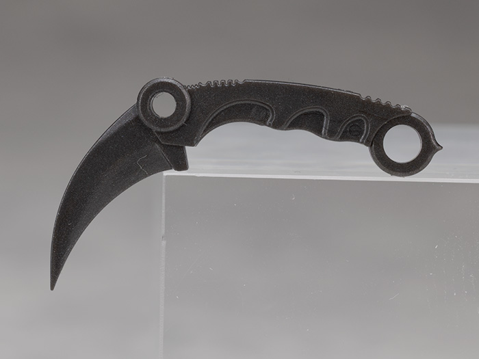 「カランビットナイフ」こちらも小さめのナイフで1パーツですが鋭く成形されています。