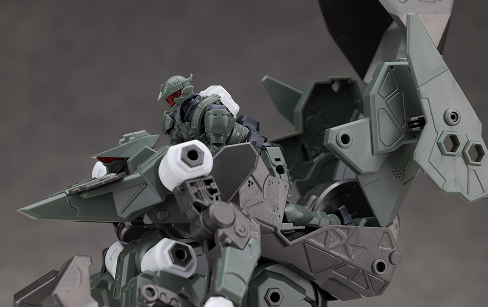 カラーは基本的にグリーンがメインカラーですが一部の装甲やフレームはホワイトやガンメタルのパーツが使われています。