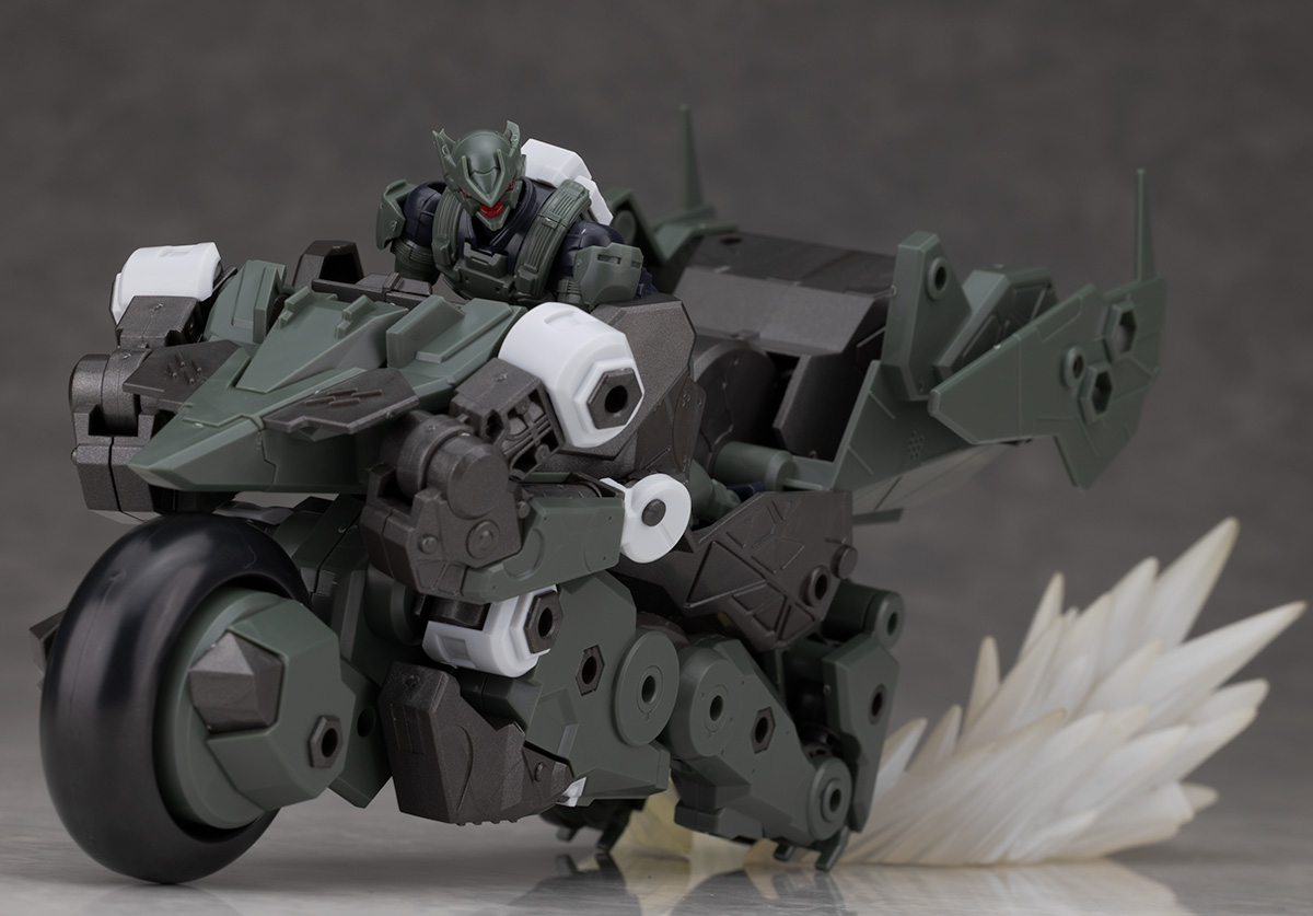 陸戦用の小型戦闘用ヘキサギアでヒューマノイドモードからビークルモードへ変形するシステムコンバート機能を持った機体となります。