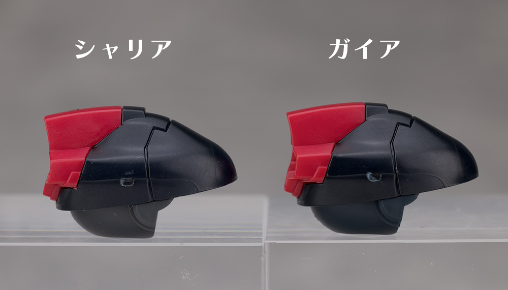 頭部アップ。ガイア/オルテガ機と並べてみましたが成型色なども特に違いは無いようです。