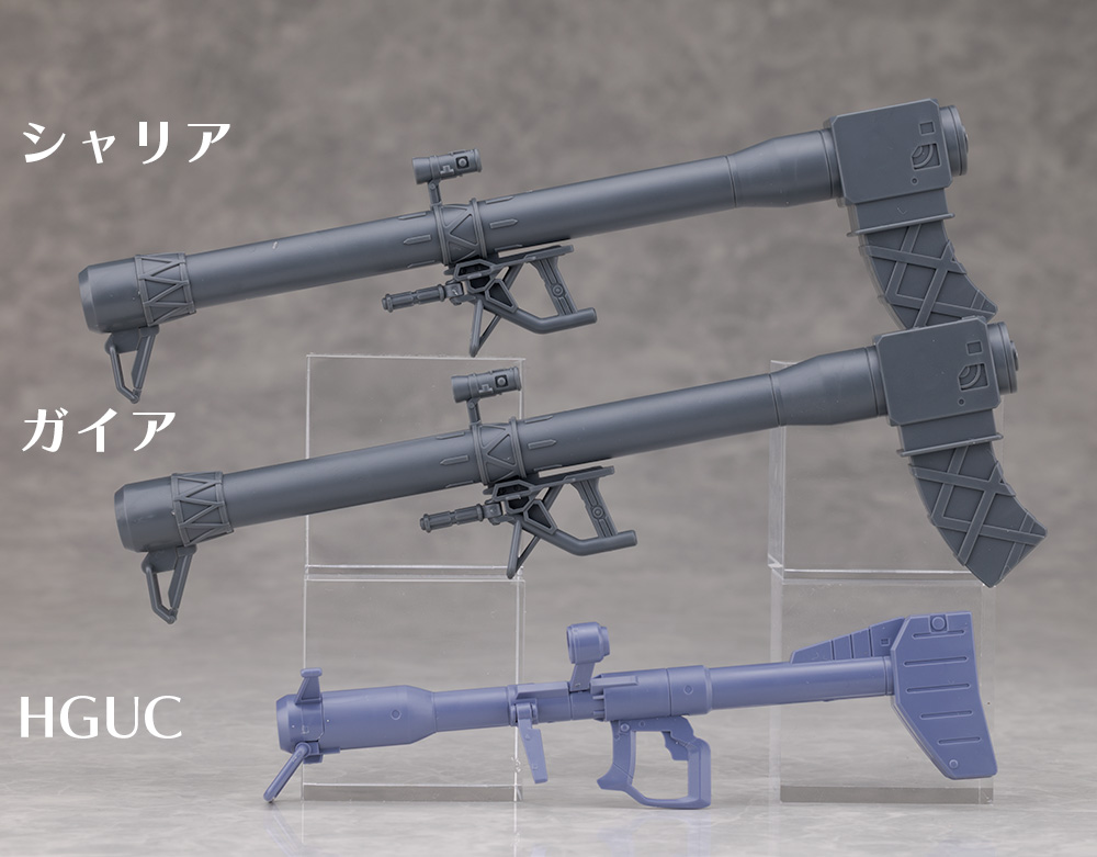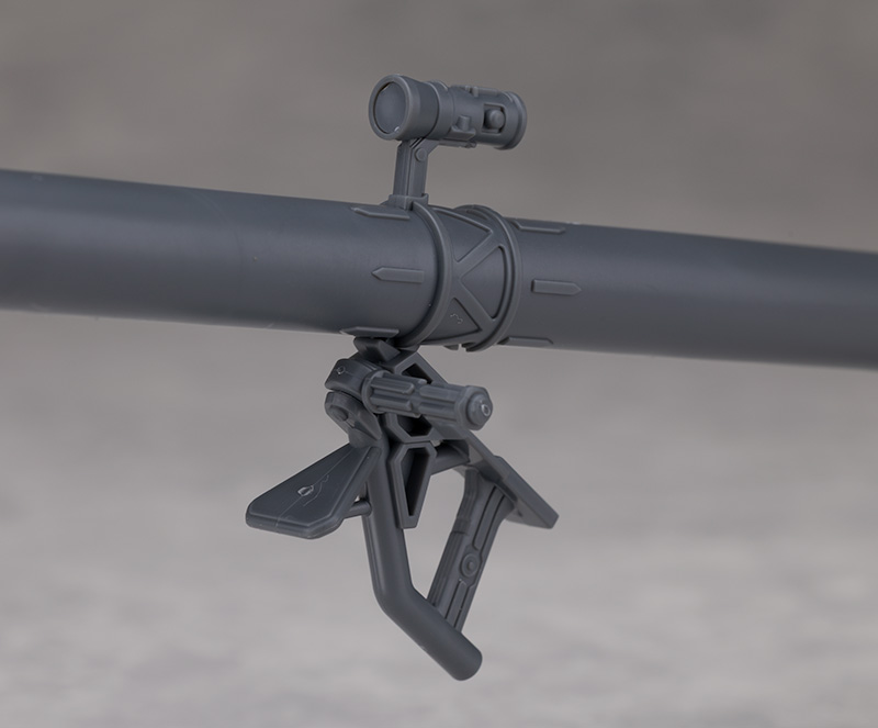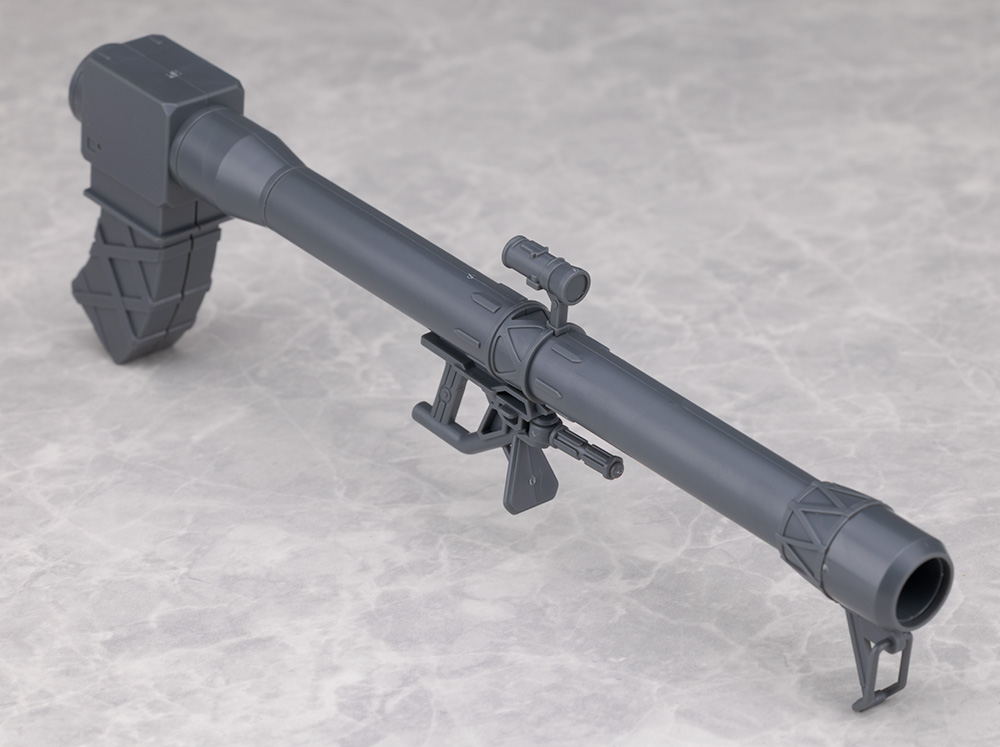 かなり大きめのバズーカですが分割はシンプルで中央に合わせ目が出ますが砲口部分は別パーツです。