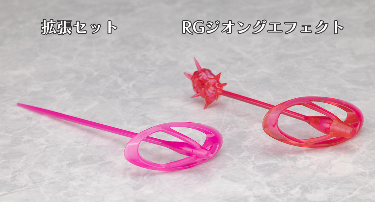 最初はRG ジオングのエフェクトを流用した物なのかなと思いましたが基部の形状は似ているものの、一回り小型で