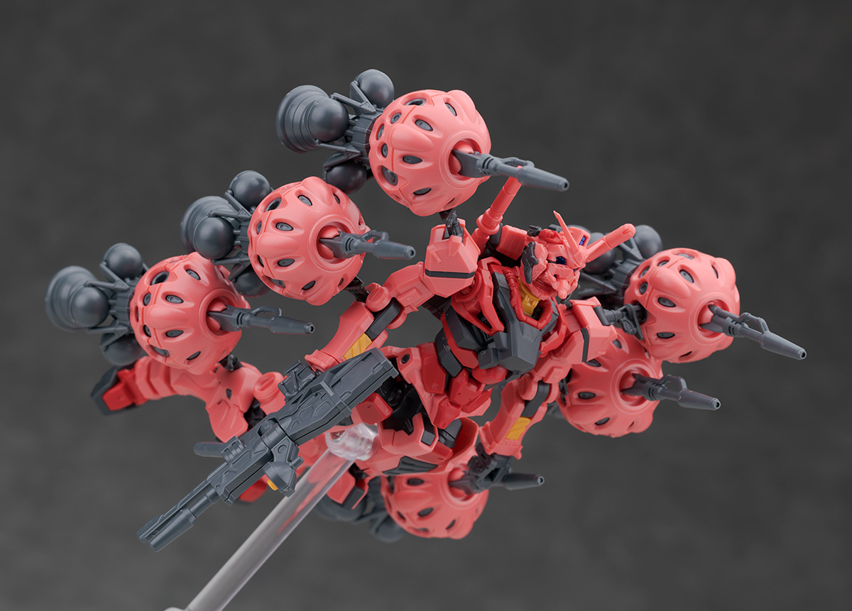今回はHG 赤いガンダムに対応したキットでシャアが搭乗したビット6基の姿をはじめ、印象的なシーンを再現できるパーツがセットされています。