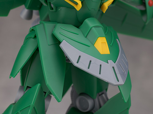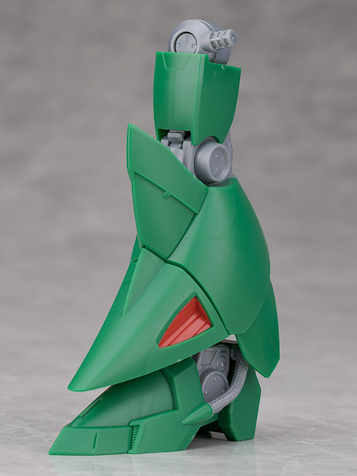 腰アーマーの形状などが特徴的で装甲が折り重なるように配置されています。