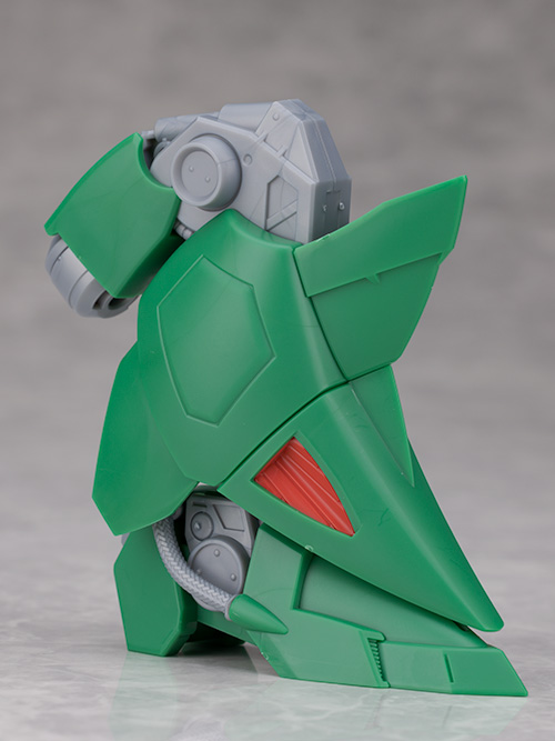 ガッシリとしたプロポーションは健在で細かい部分までしっかり成型色で色分けされ肩部分の配色の違いなども再現されているのは良いですね。