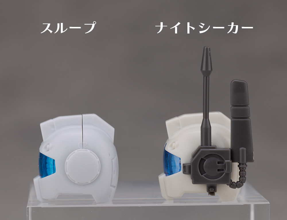頭部アップ。細部の比較は多くのパーツが流用されているナイトシーカーと比較していきます。