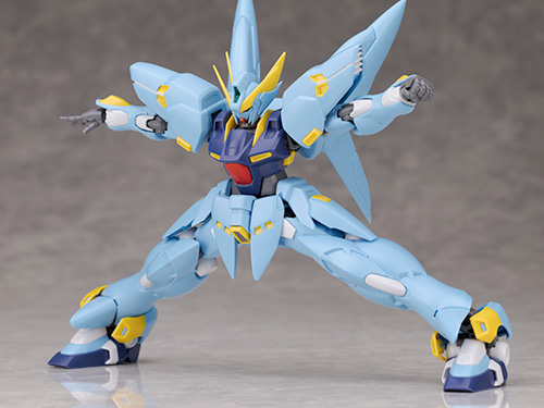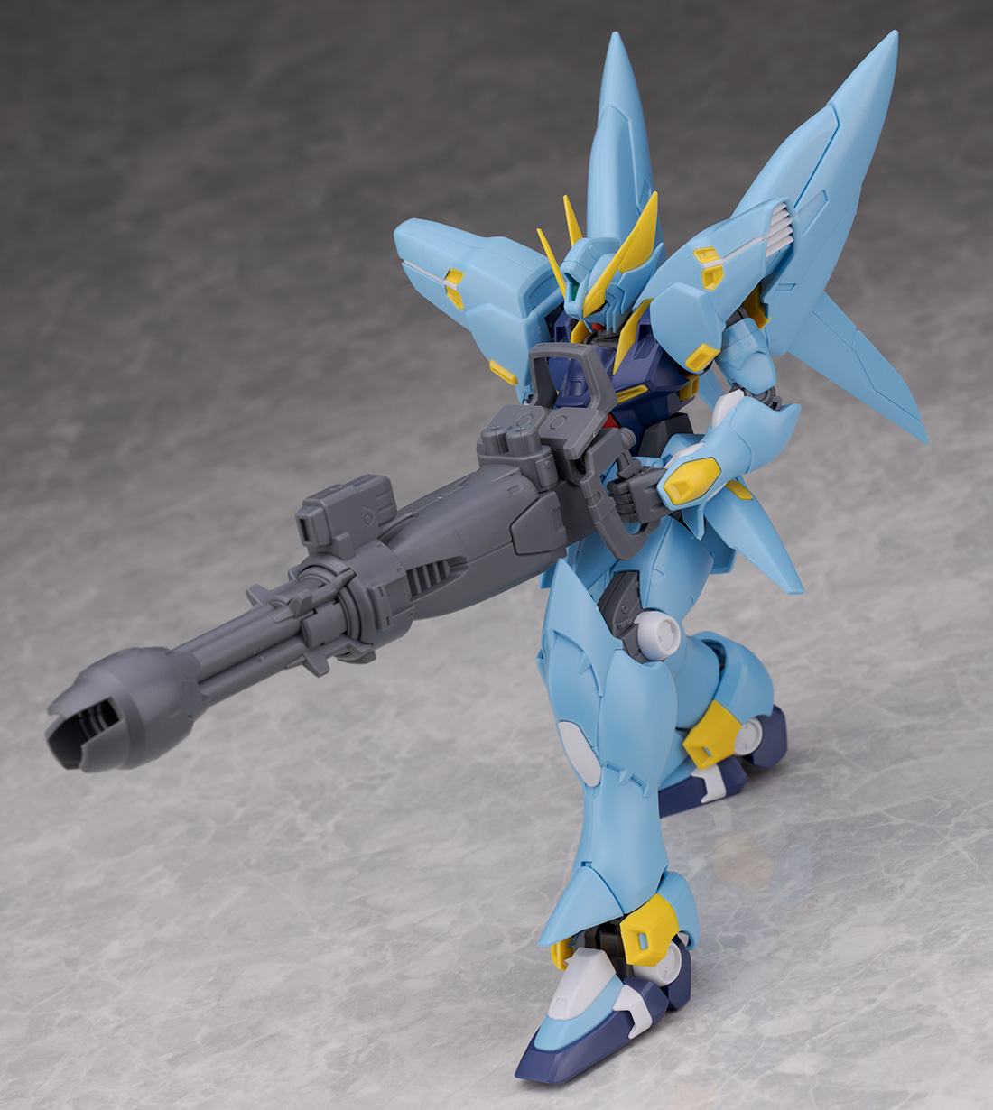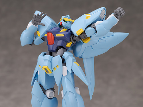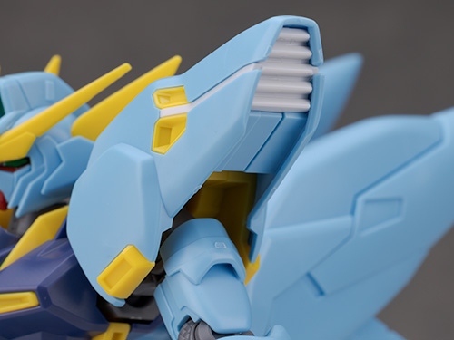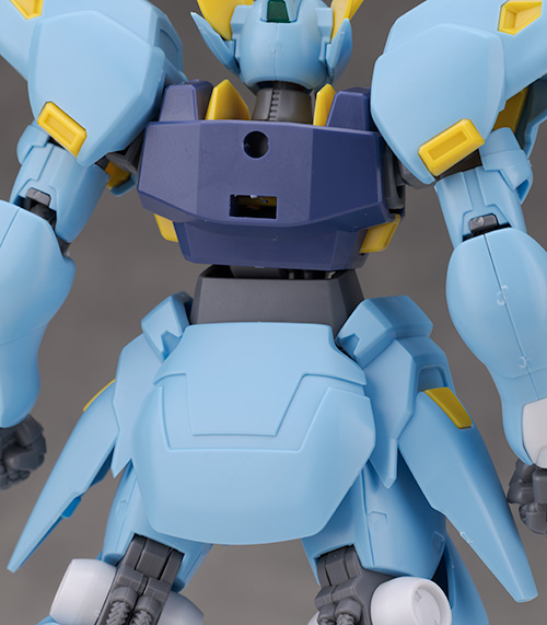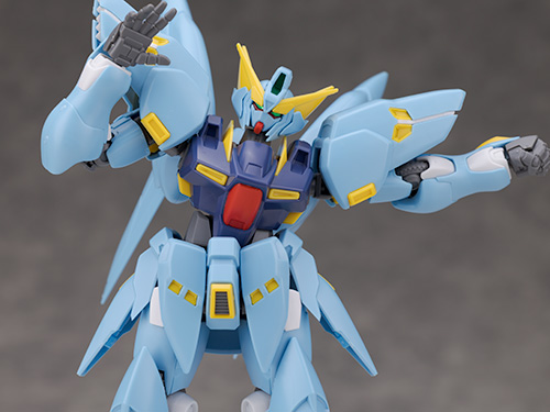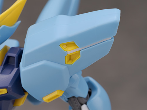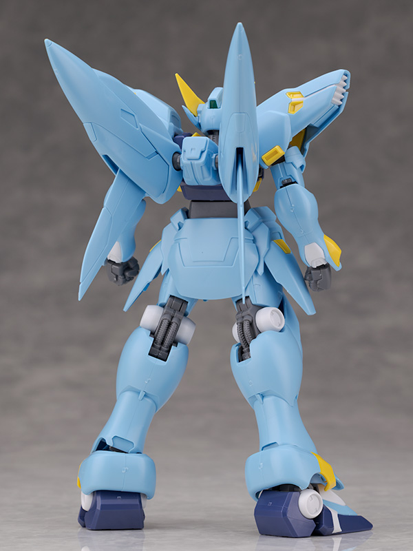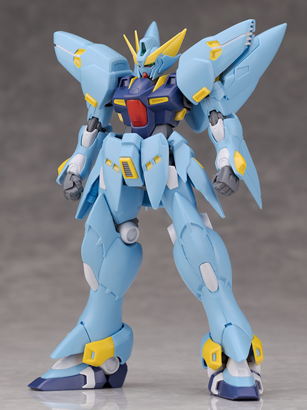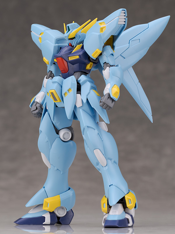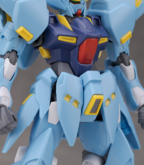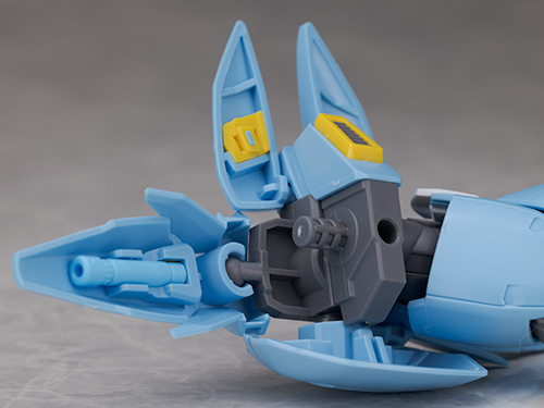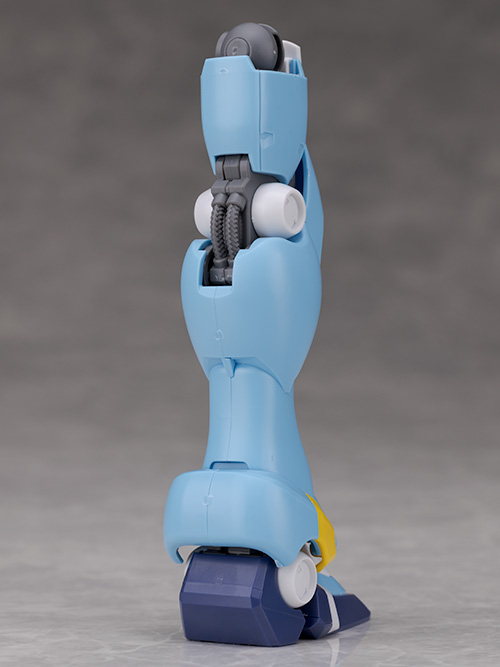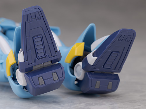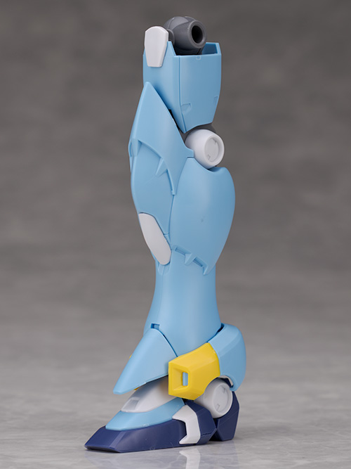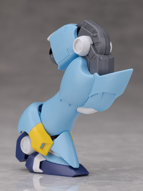 そのためミサイルハッチなどのギミックは無くカラーは水色で肩アーマーや脹脛などにボリュームのあるデザインとなっています。