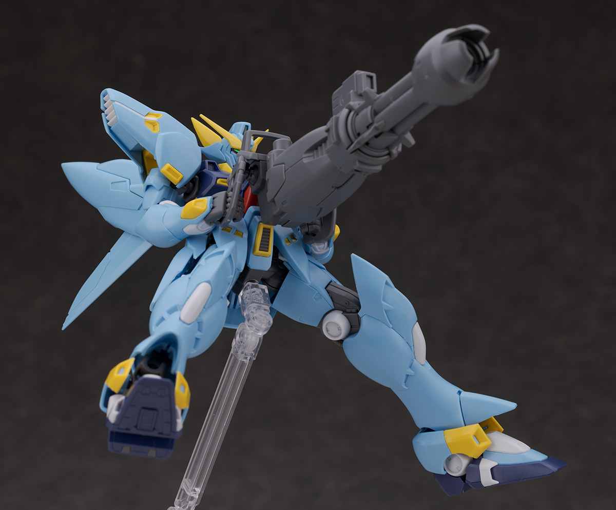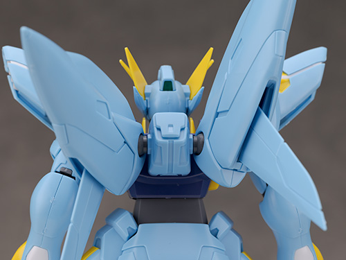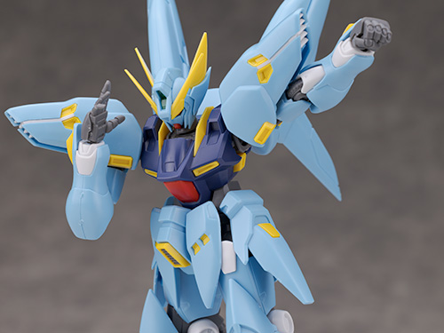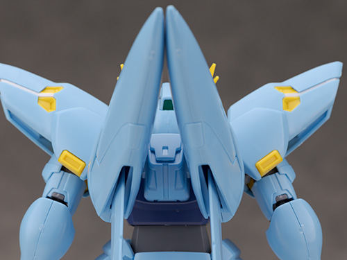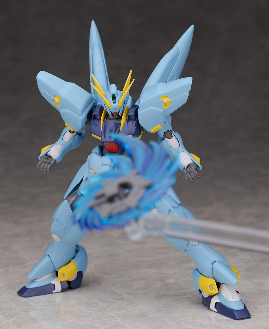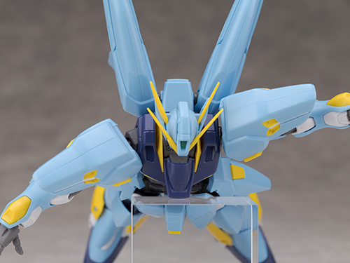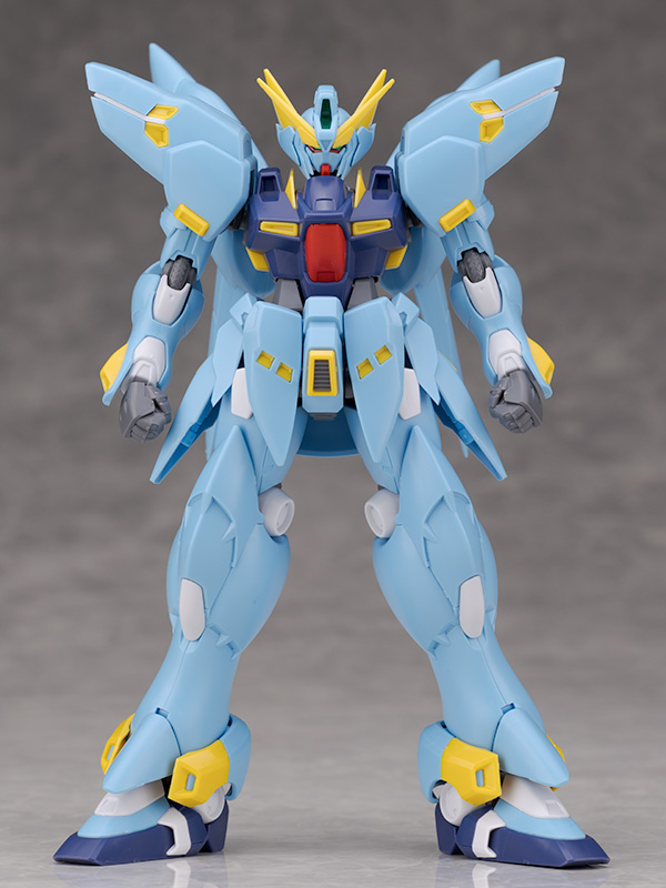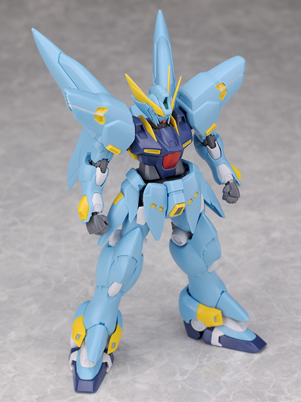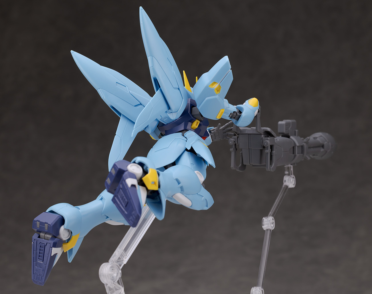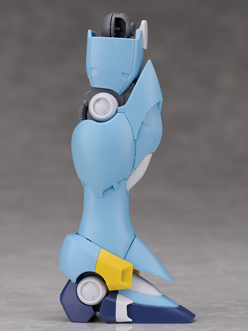 そのためミサイルハッチなどのギミックは無くカラーは水色で肩アーマーや脹脛などにボリュームのあるデザインとなっています。