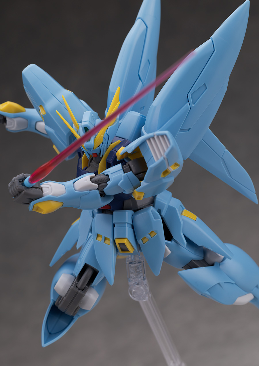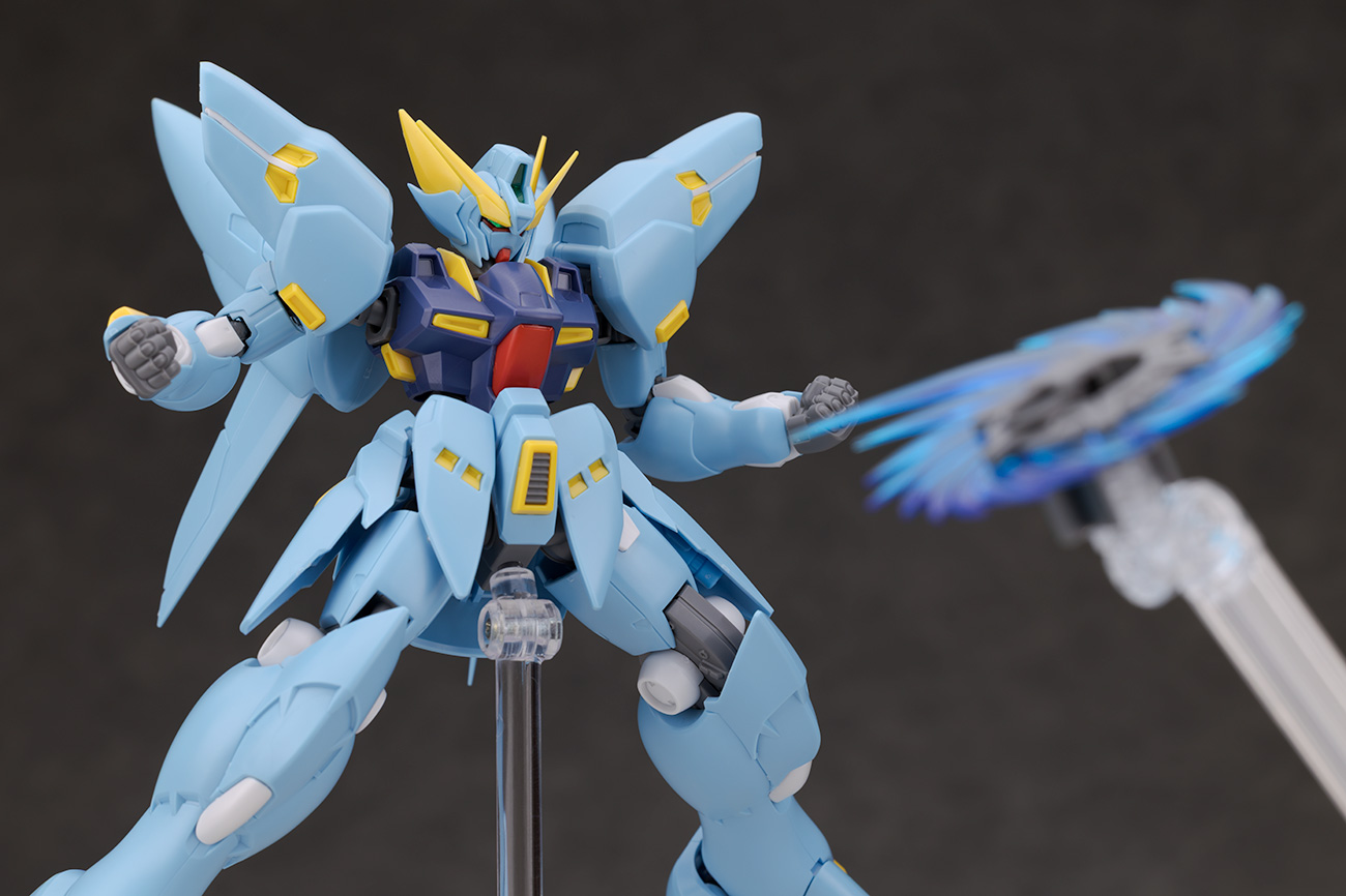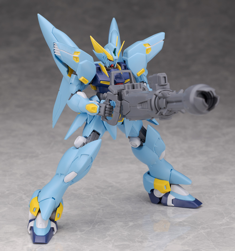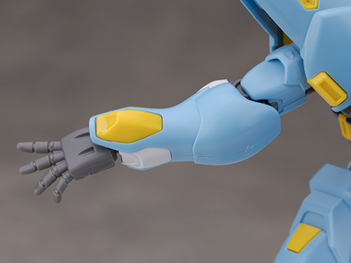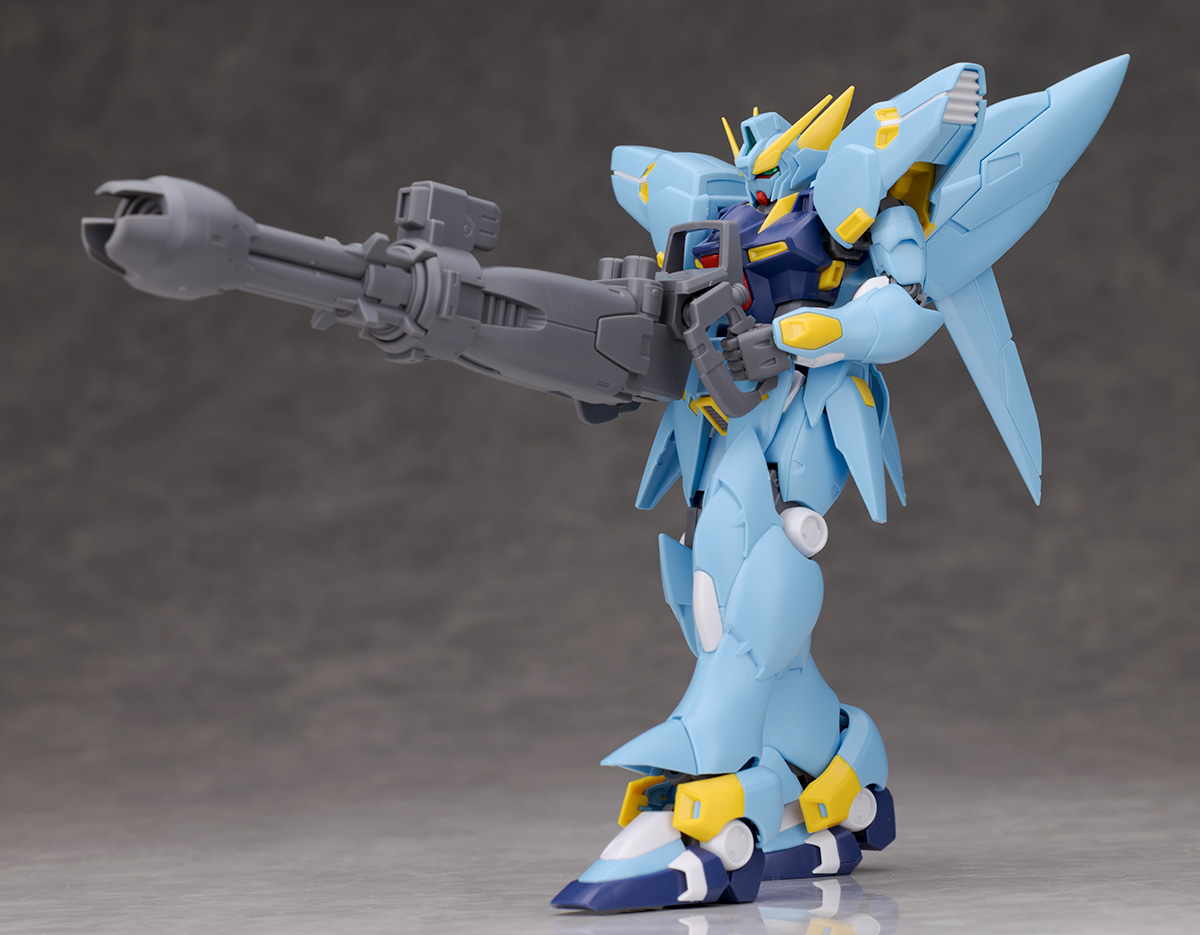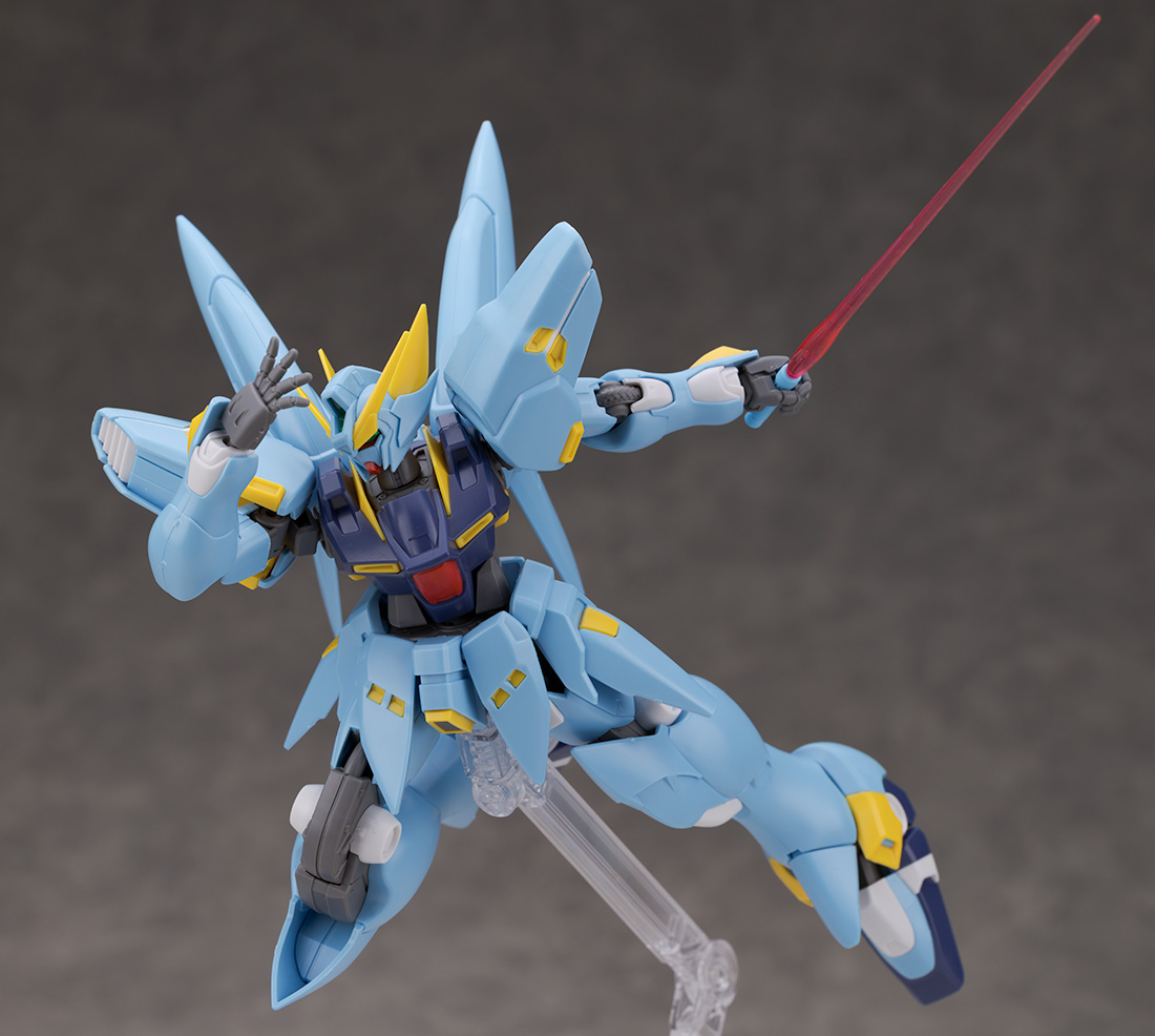 そのためミサイルハッチなどのギミックは無くカラーは水色で肩アーマーや脹脛などにボリュームのあるデザインとなっています。