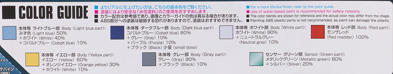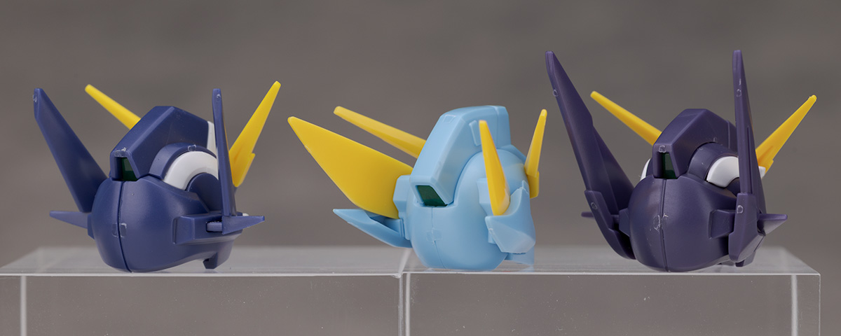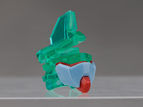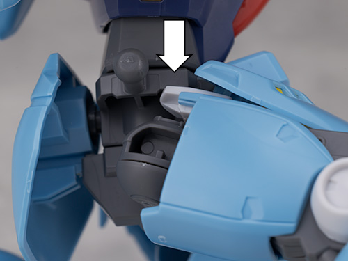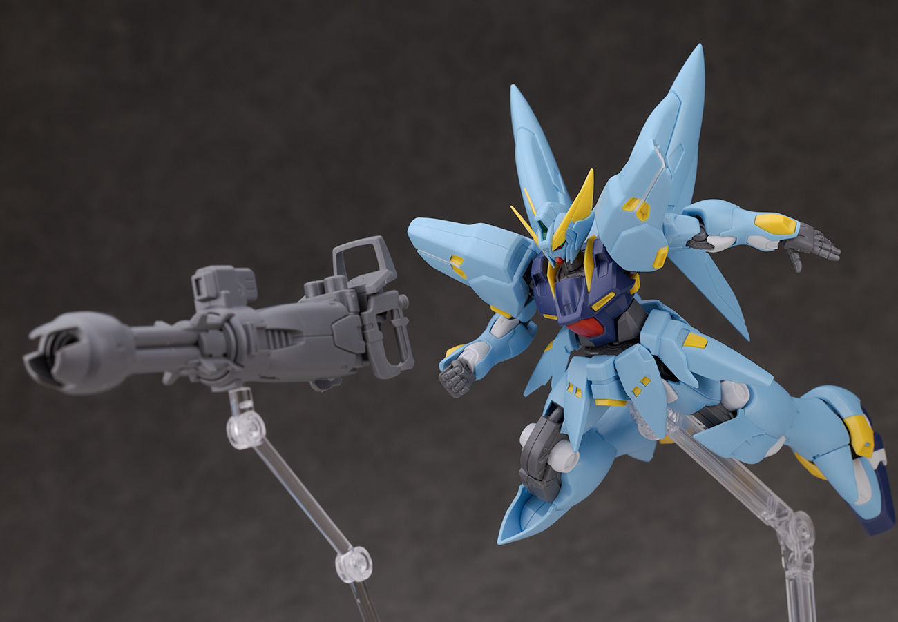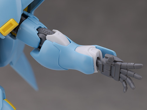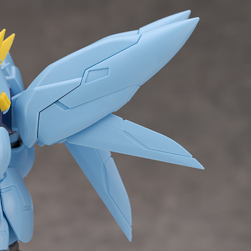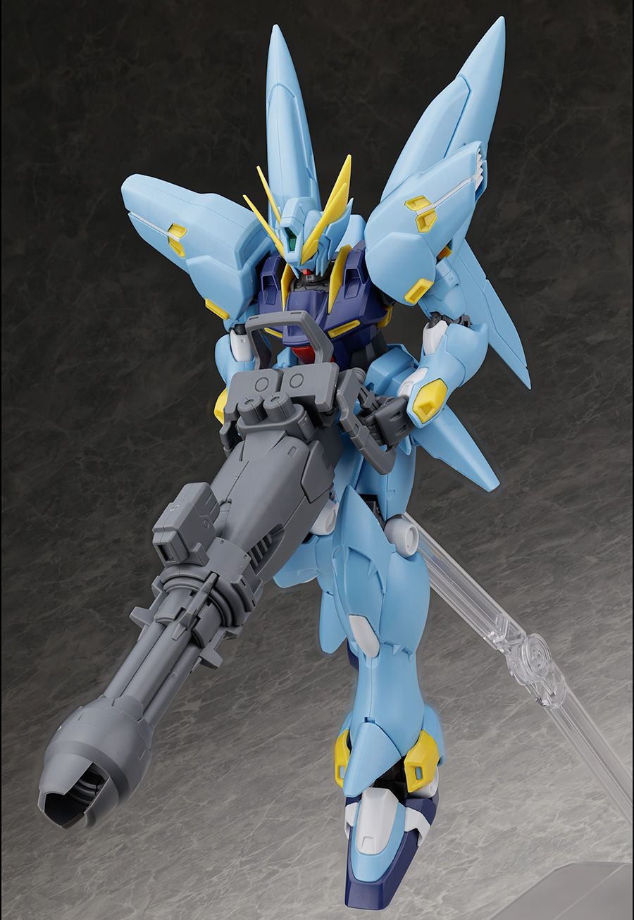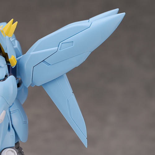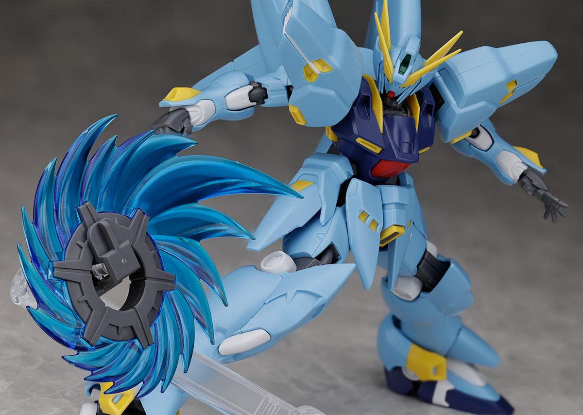 そのためミサイルハッチなどのギミックは無くカラーは水色で肩アーマーや脹脛などにボリュームのあるデザインとなっています。