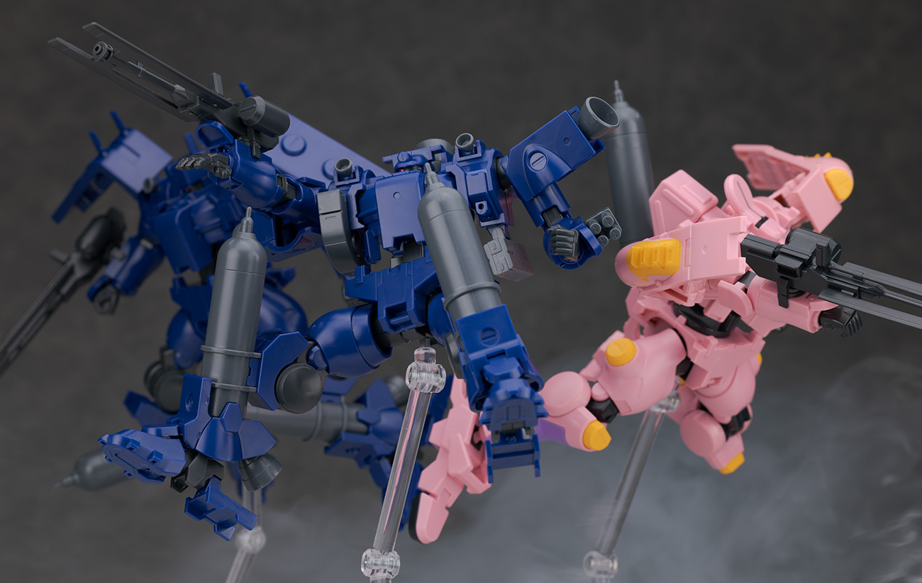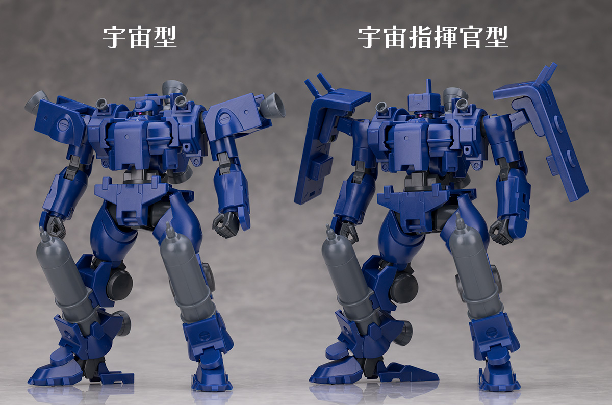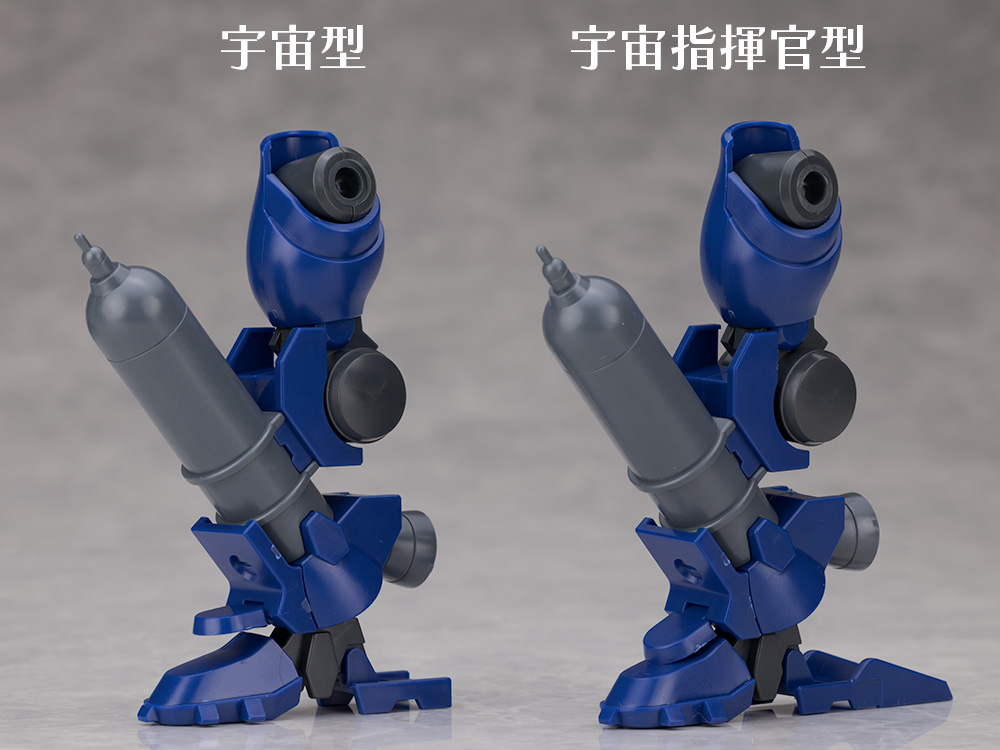 全身に装着されたスラスターや脚部と一体化されたタンクなど宇宙型らしい特徴はそのままで地上型と並べても面白いですし、