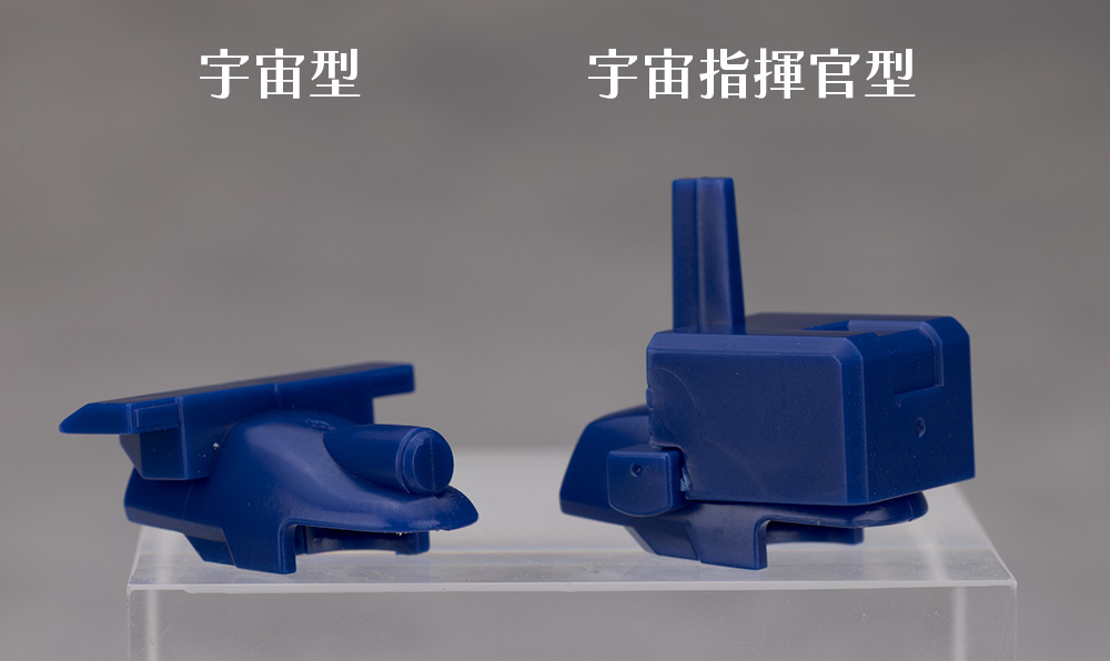 宇宙指揮官型はカカトのパーツが後方に大きく伸びていますが通常の宇宙型はシンプルな形状です。