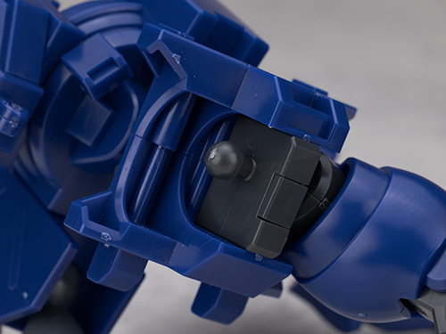 股関節はティエレン系キット共通の構造。基部はBJですが軸接続との組み合わせで広い可動範囲が確保されています。