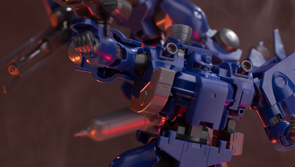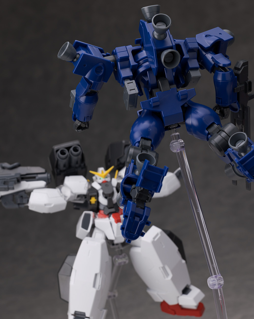 肩にはスラスターが増設され背面には3つの大型スラスターが装着されたバックパックに換装されています。