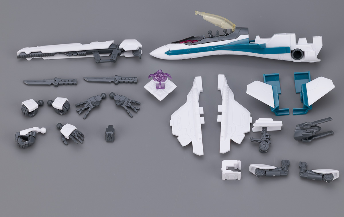 付属品はビームガンポッド、アサルトナイフ×2、持ち手、ワルキューレハンドサイン手、右銃持ち手、左平手、