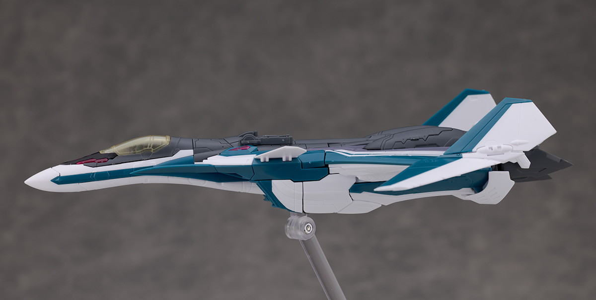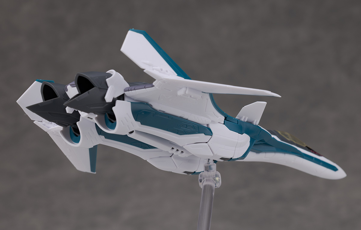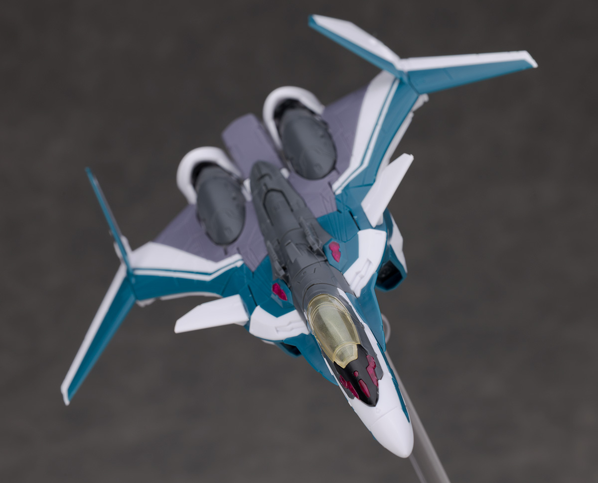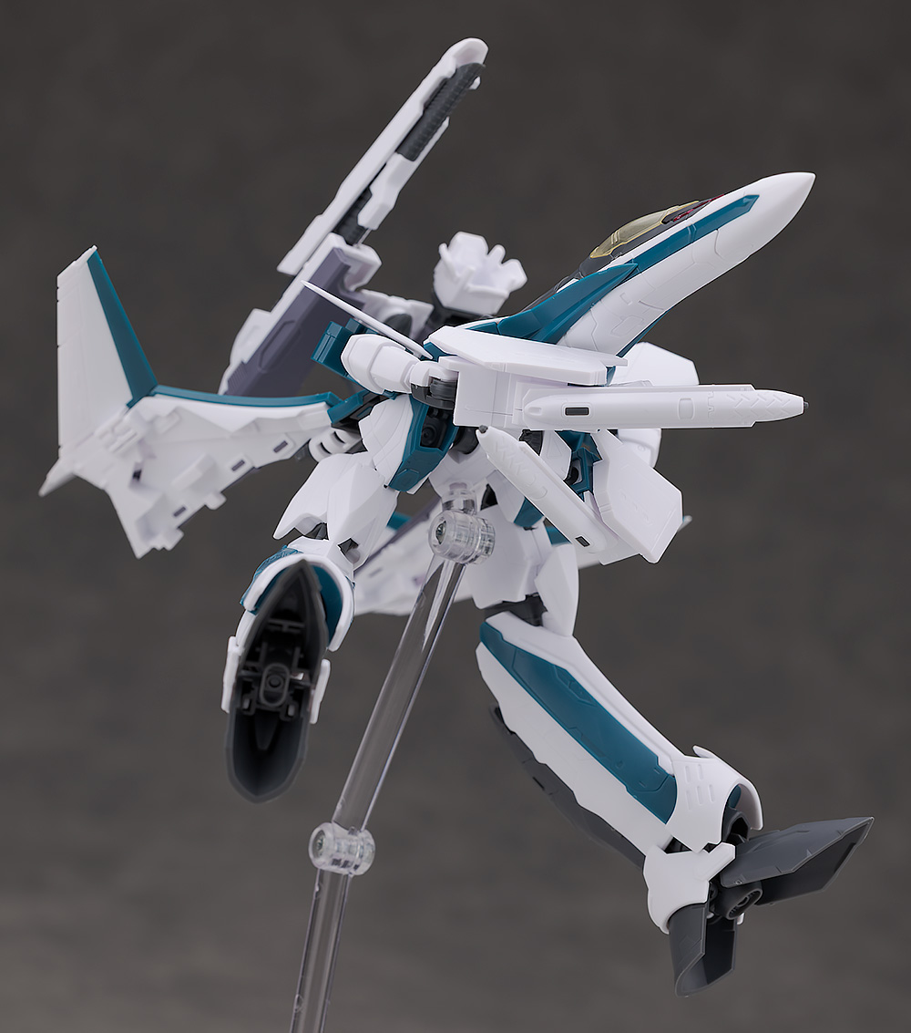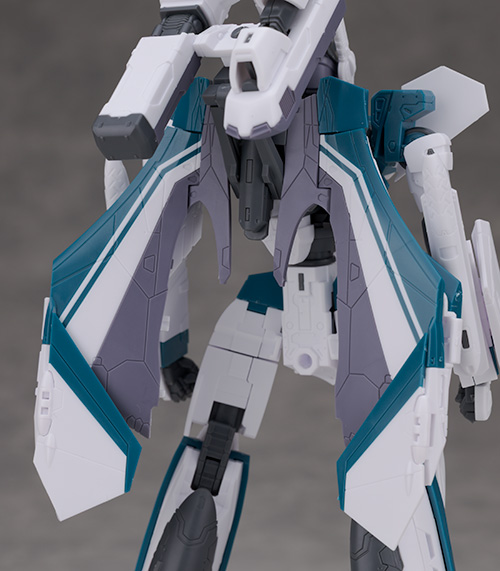 シルエットは他のVF-31と変わらず、機首が長く前進翼が搭載されたシャープなデザインを再現。
