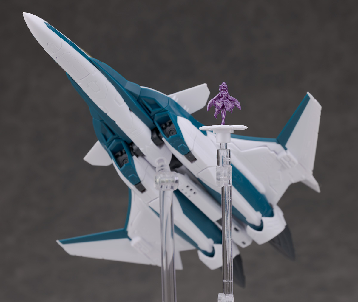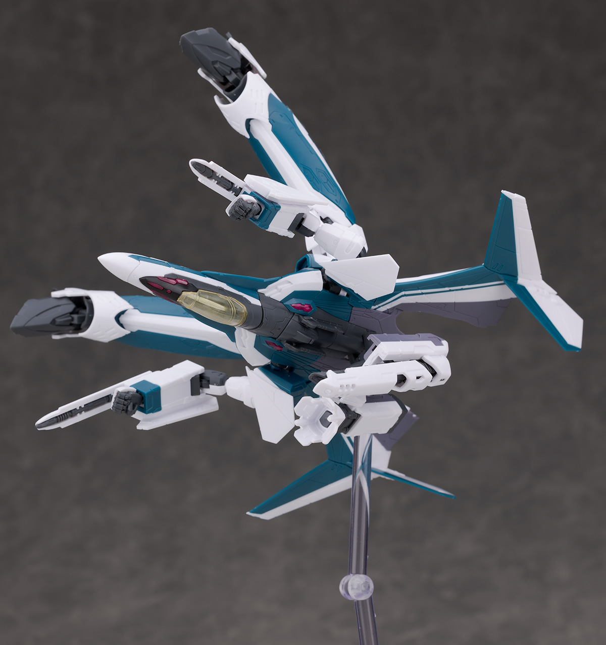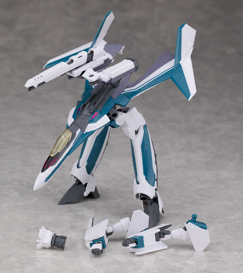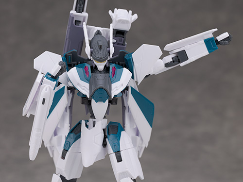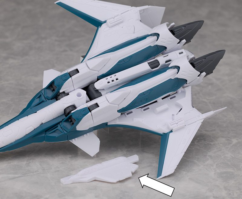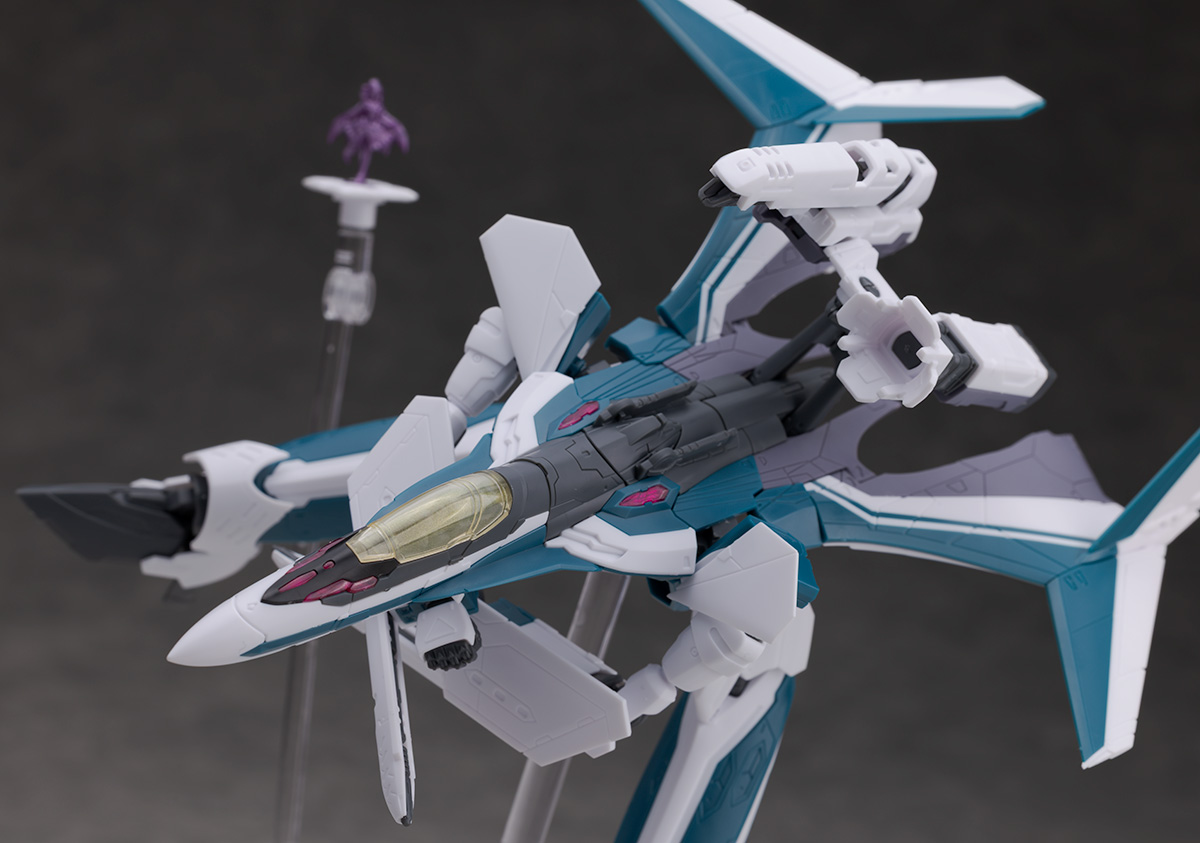 シルエットは他のVF-31と変わらず、機首が長く前進翼が搭載されたシャープなデザインを再現。