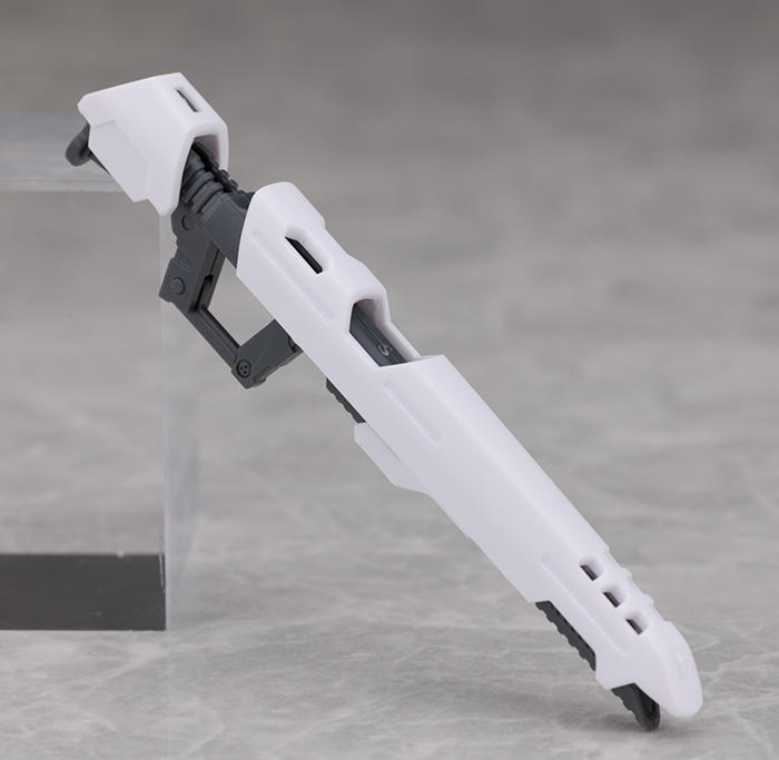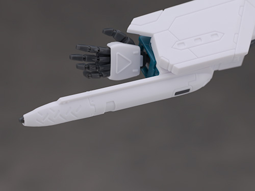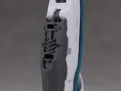 銃持ち手には角度が付けられているため無理無くビームガンポッドの保持が可能です。