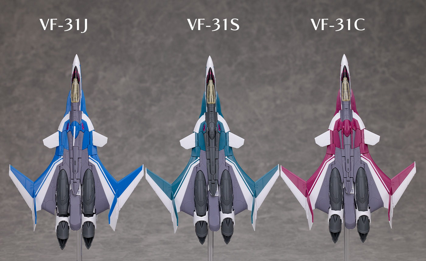 VF-31J(ハヤテ・インメルマン機)やVF-31C(ミラージュ・ファリーナ・ジーナス機)との比較。