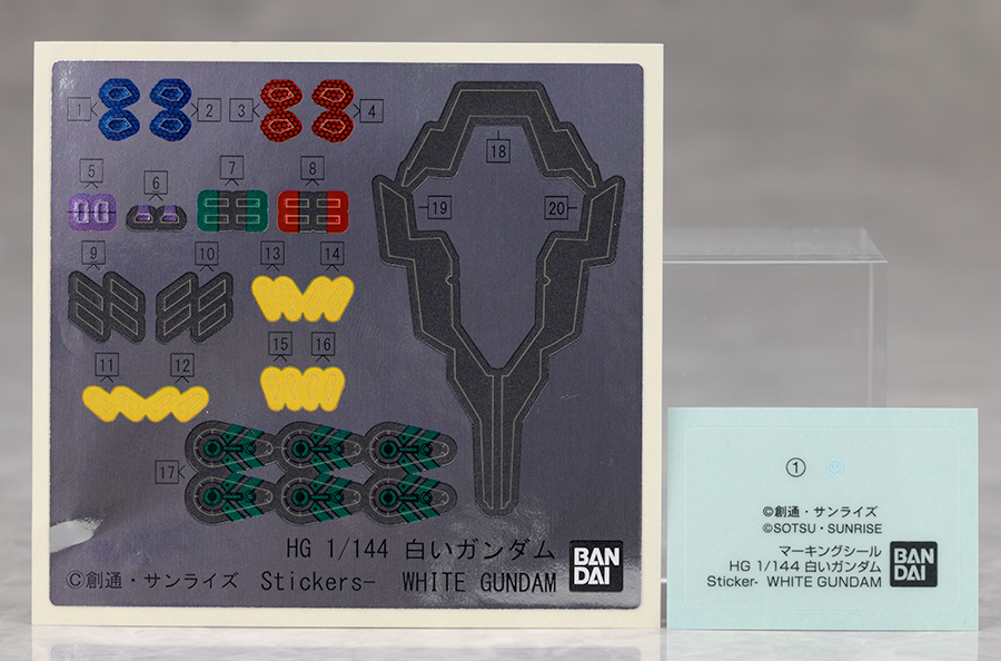 エクステンダー部分やシールドの模様を補うホイルシールと連邦マークが印刷されたマーキングシールが付属します。