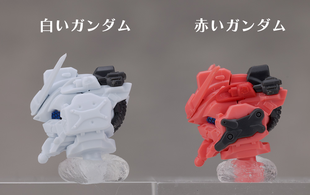 頭部とビットの有無ぐらいしか造形的な違いはありませんが、カラーがガンダムらしいカラーになったのは新鮮ですね。