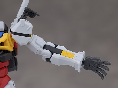 左手は平手があり前腕の警戒テープ状のディテールも黄色部分は分割されていますが間のグレーはシールです。