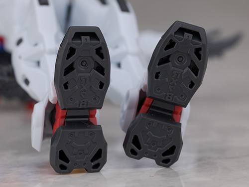 配色は通常のガンダムに近いですが、足の甲が赤く、ソールがダークグレーなのが特徴的。