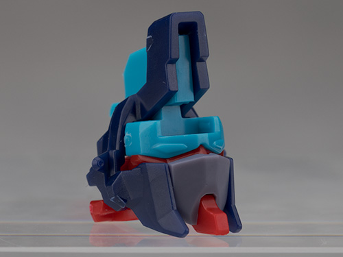 スラスター部分などもパーツ分割され、膝の白い部分も色分けされています。