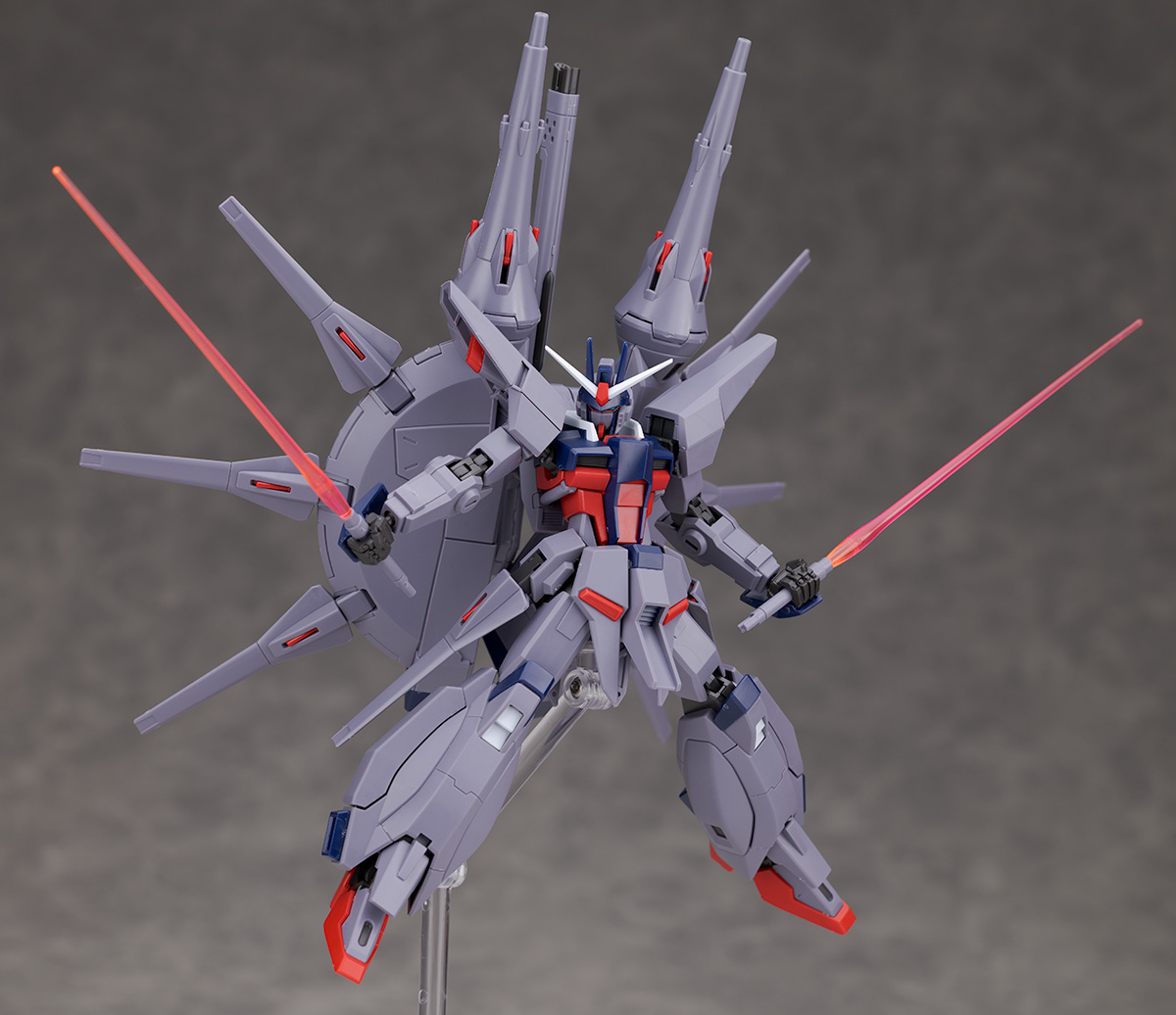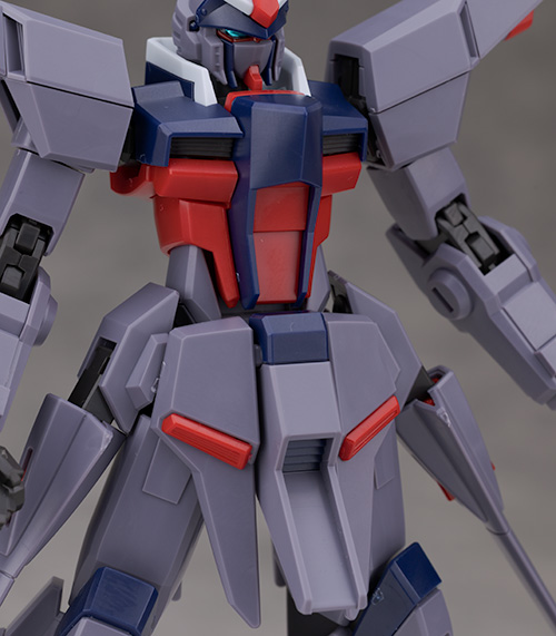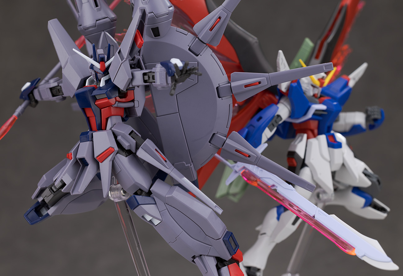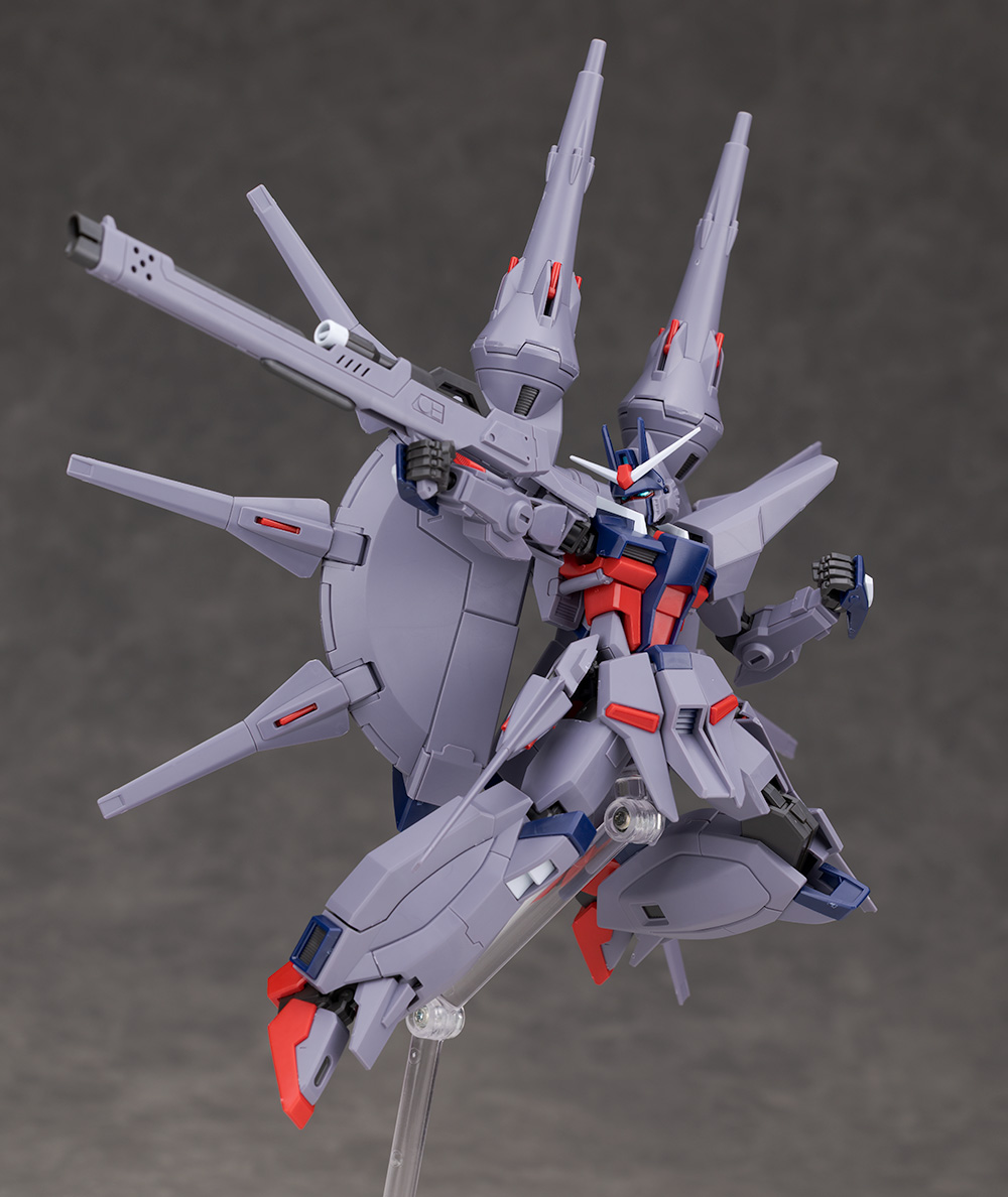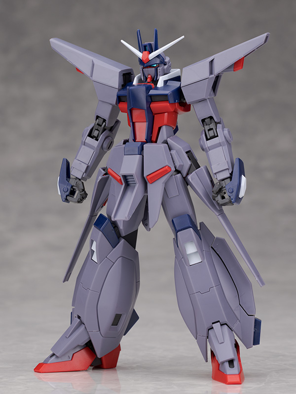 4機の中では最後発な分、構造は最新で色分けや可動が大きく進化し他のHGCE組と並べても違和感のないスタイリッシュな姿にまとまっています。