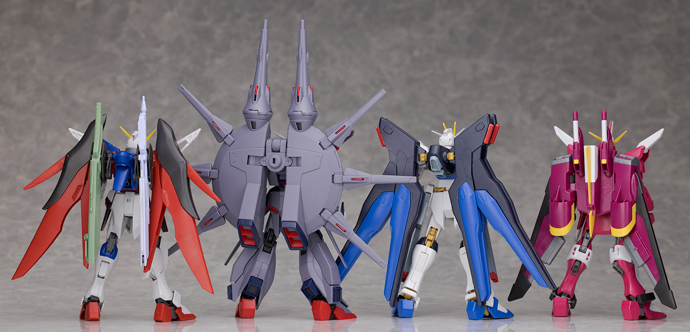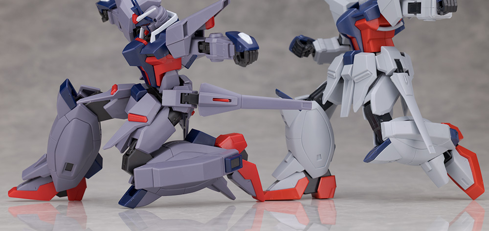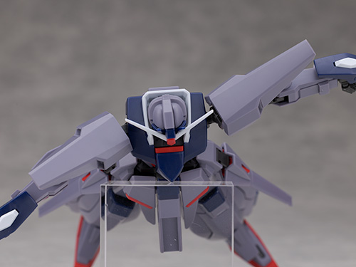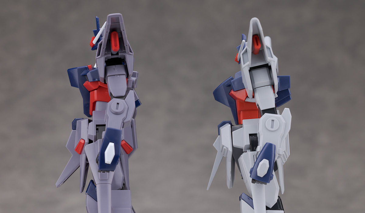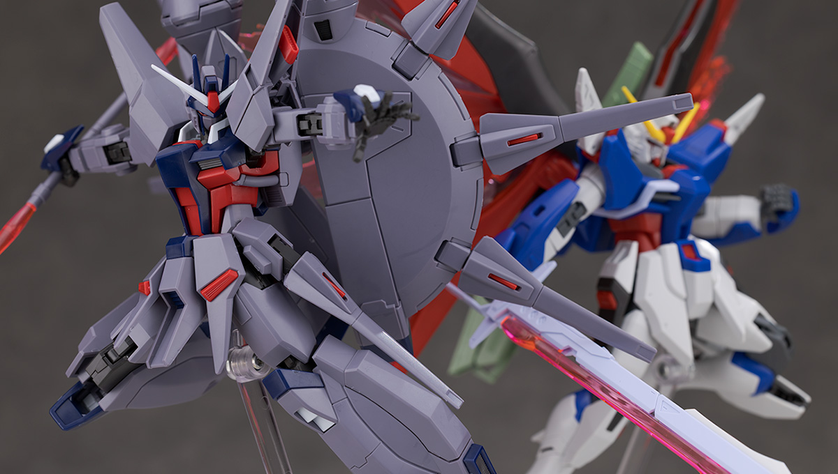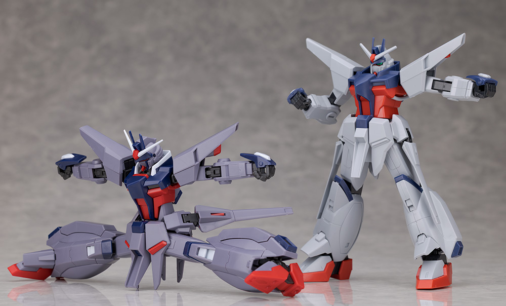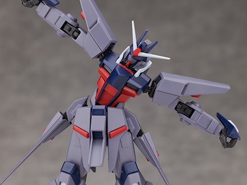 4機の中では最後発な分、構造は最新で色分けや可動が大きく進化し他のHGCE組と並べても違和感のないスタイリッシュな姿にまとまっています。