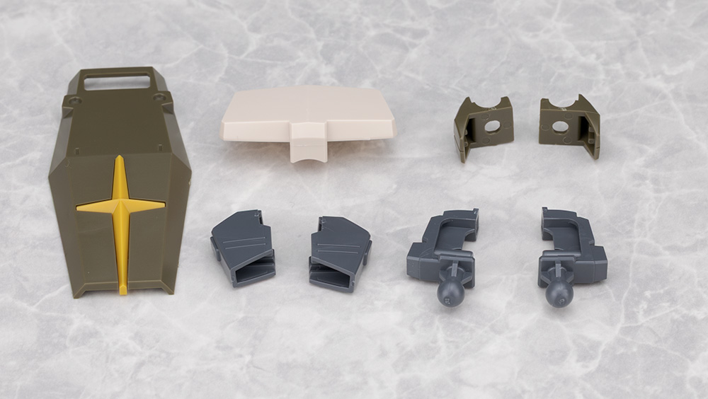 ヘルメットは前後分割で一部合わせ目が出る他、バルカンの砲口やダクトなどは塗装が必要です。