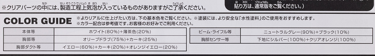 機体の配色ですが追加ランナーがあるためよりシンプル気味になったカラーリングの大部分が再現されています。