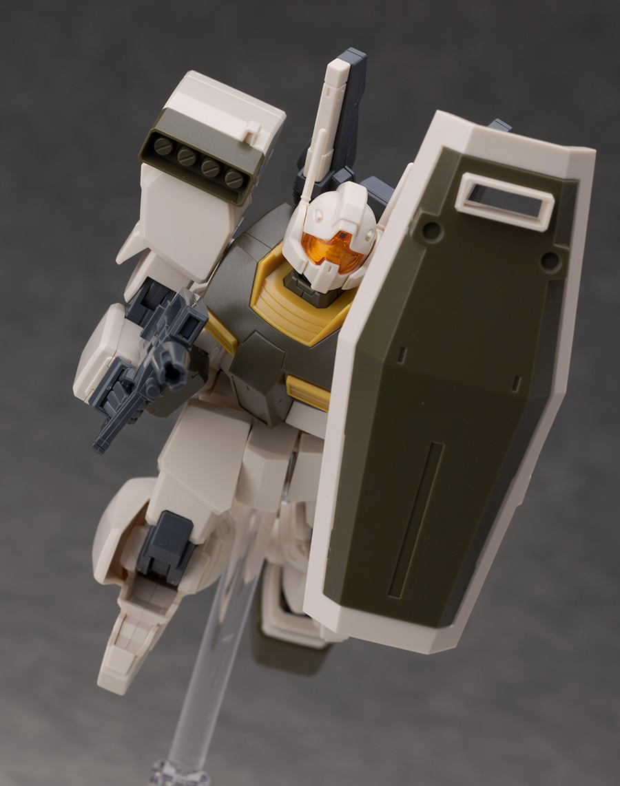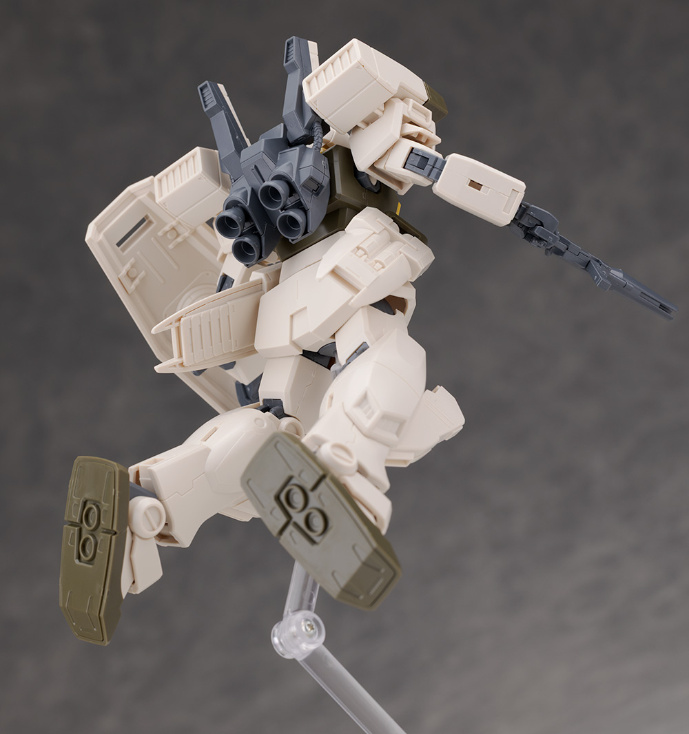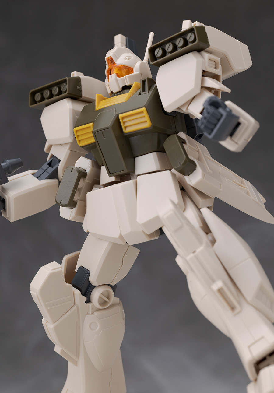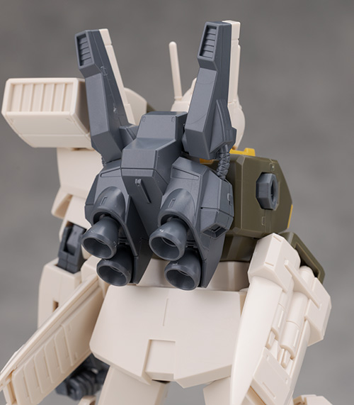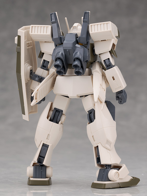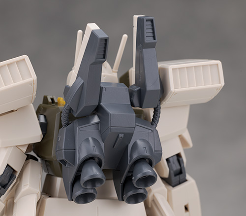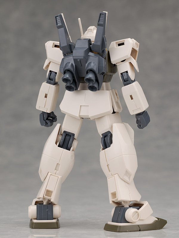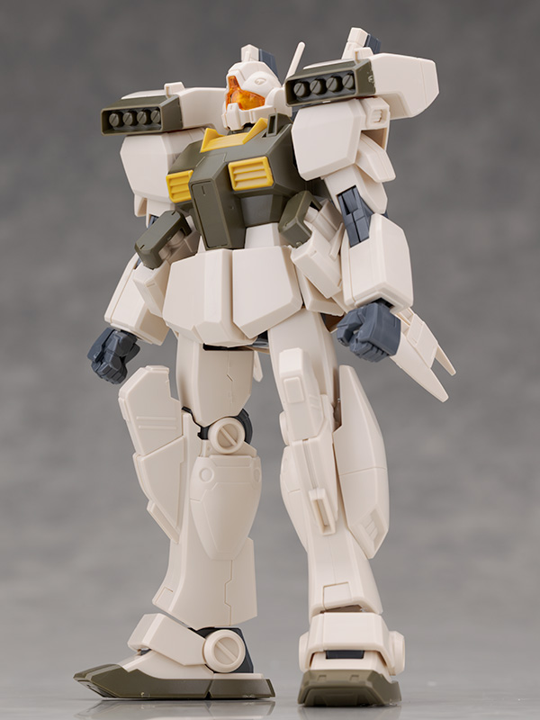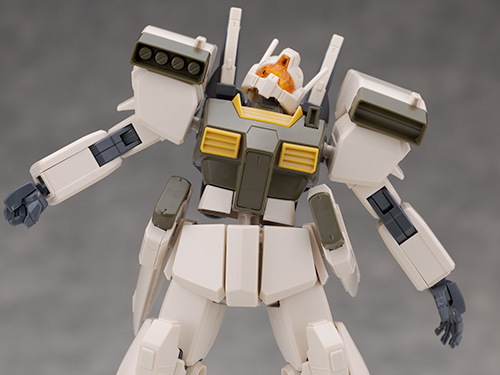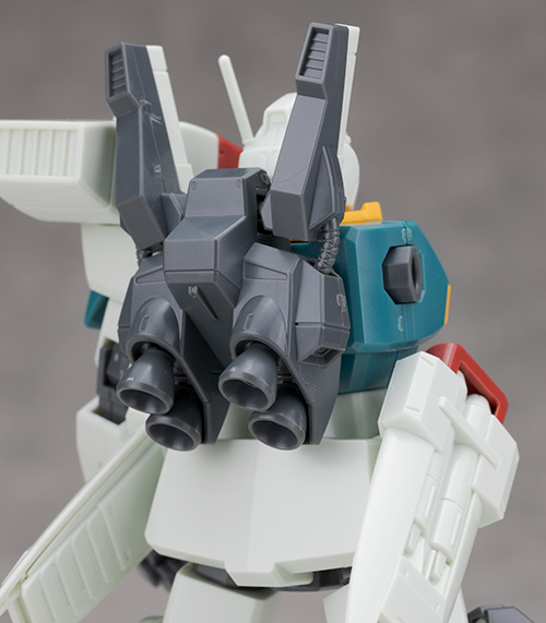 ジムをベースとしたデザインですが肩にはミサイル・ポッド、腰には大型ミサイル・ランチャーが装備されていて