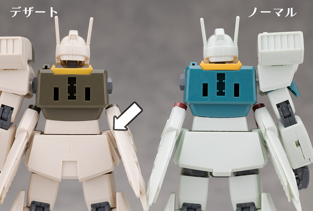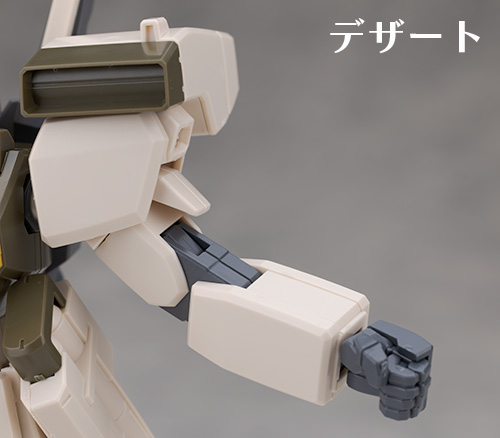腕部ですが基本的には共通なものの、上腕のパーツの一部が新規でライトブラウン系のホワイトに変わっています。