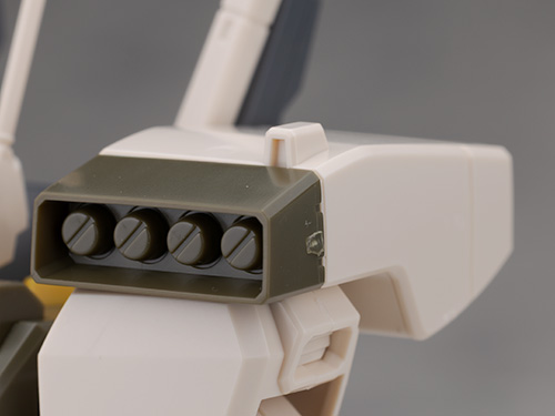 肩のミサイル・ポッドは先端を交換する事で弾頭が露出した状態を再現できます。