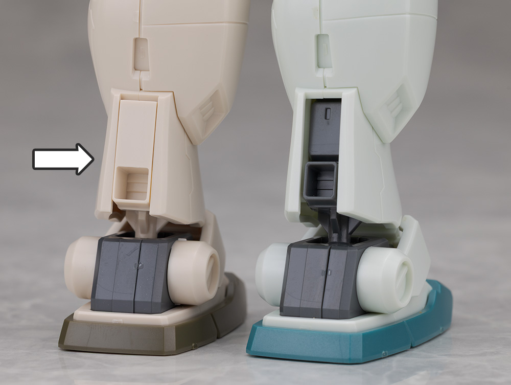 アキレス腱にあたる部分には新規パーツが使われていて形状の違いを再現。