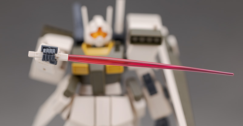「ビーム・サーベル」は背中のグリップを取り外し、サーベル刃を取り付けて再現。