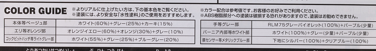 説明書はノーマルジェガンの物に違う部分を追記したペーパーが1枚付属。