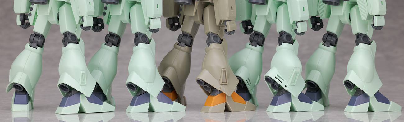 脚部は大腿部や足首の変更はありませんが、膝下の装甲が変更されスラスターが増強されています。
