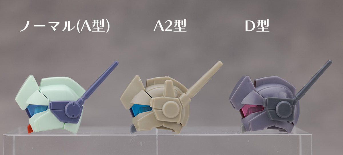 D型は肩アーマーや腰部などで違いがわかりやすいですがA型とA2型は機体カラーを除けば正面からだとぱっと見は分かりにくいぐらいの違いです。