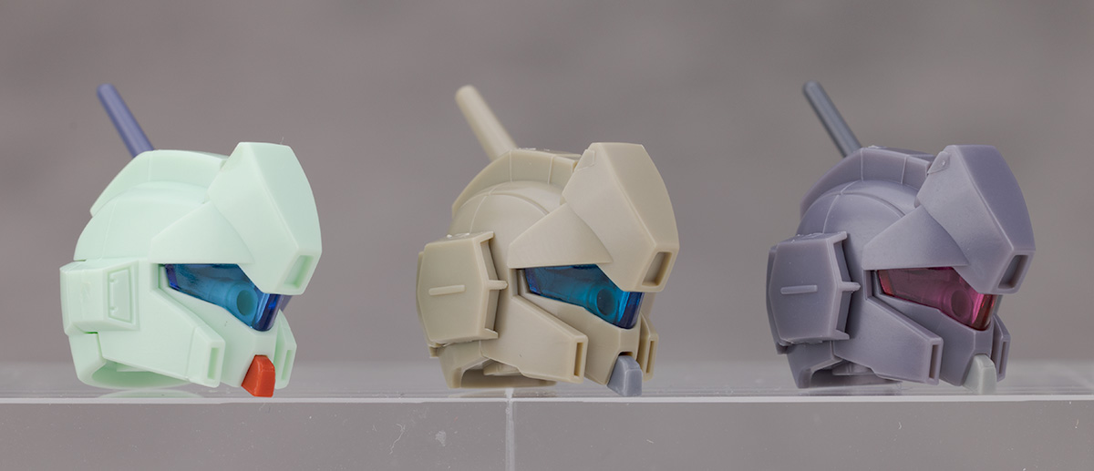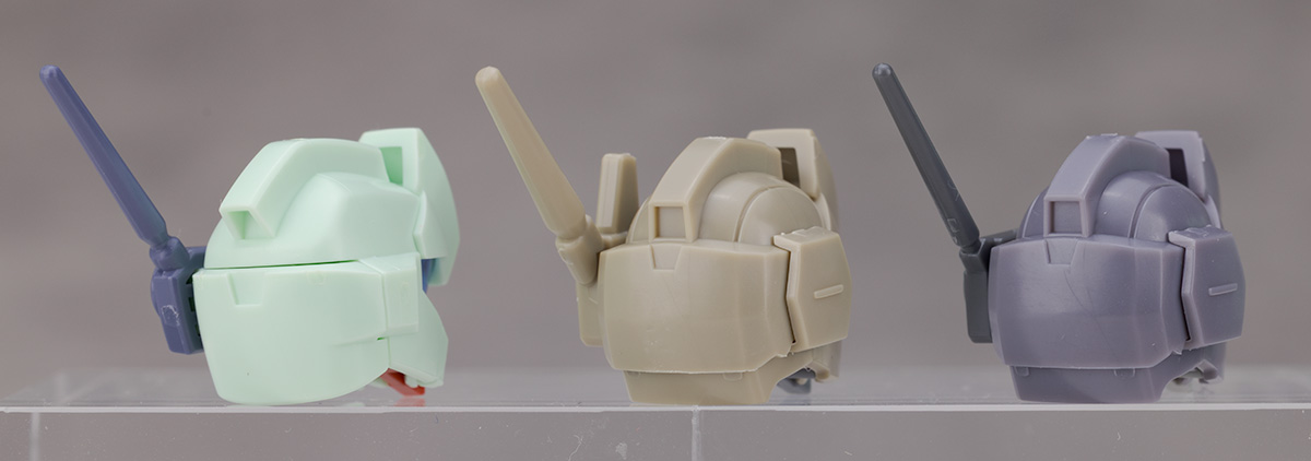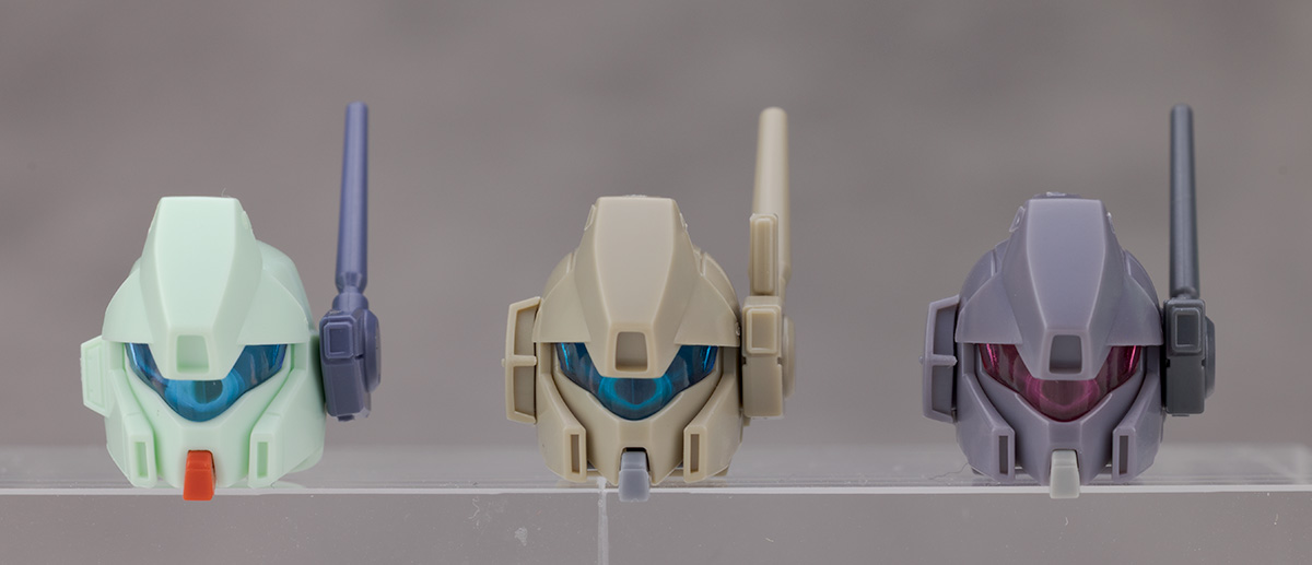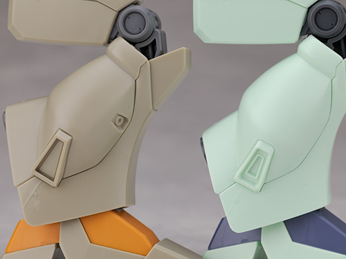 頭部アップ。ノーマルジェガン(A型)とジェガン(D型)を並べて比較しています。
