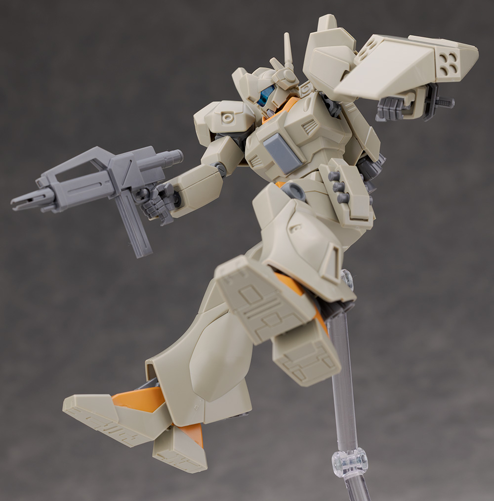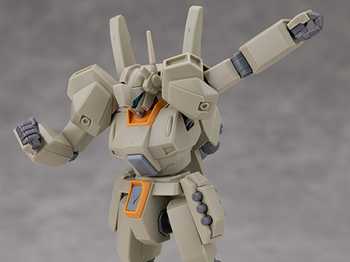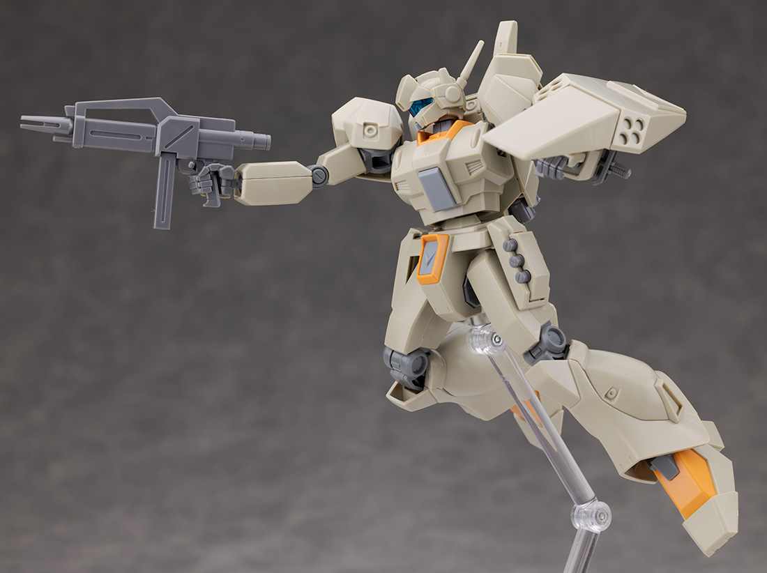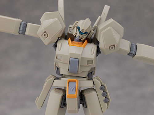 装甲の形状が一部変わりましたがシルエットが大きく変わった訳ではなく他のノーマルジェガンなどと同じ可動範囲が確保されています。