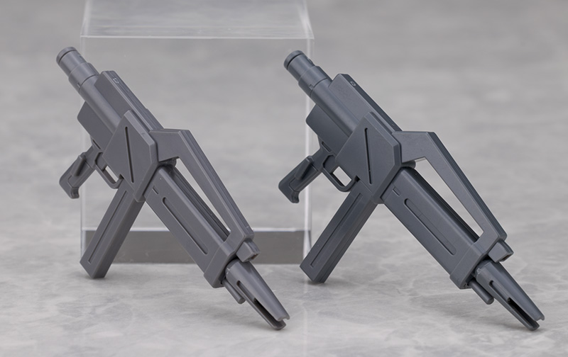 右手のみですが銃持ち手があり、保持ダボもあるためグラつく事なく保持可能。
