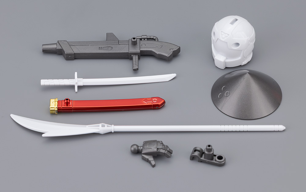 付属品は種子島雷威銃、武久丸、薙刀、足軽璽武用パーツ、左平手、武器接続ジョイントのみとなります。