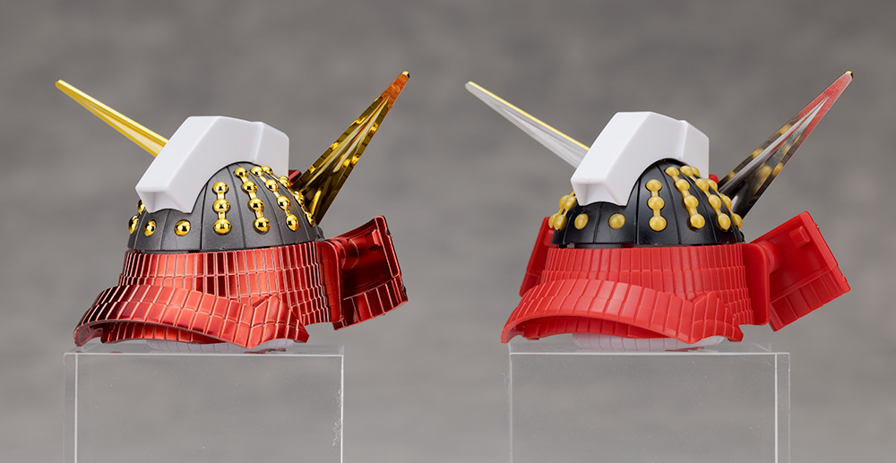 頭部アップ。ノーマルの武者頑駄無と比較しています。