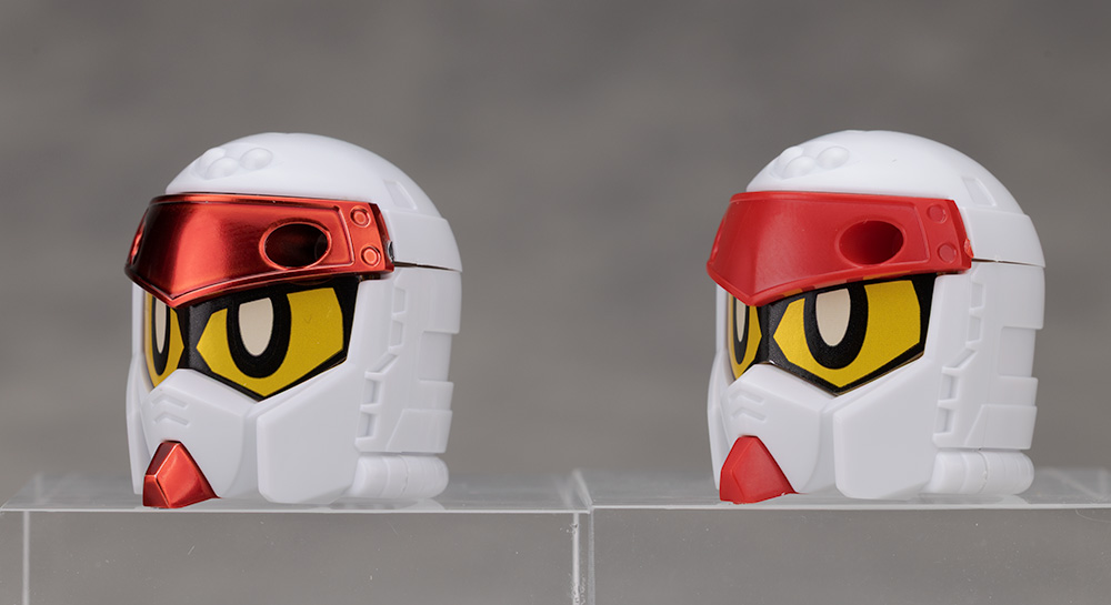 頭部の表情交換ギミックも変わらず、頭部を一旦分解して目線パーツを回転させる事で2種類の表情が選択可能。