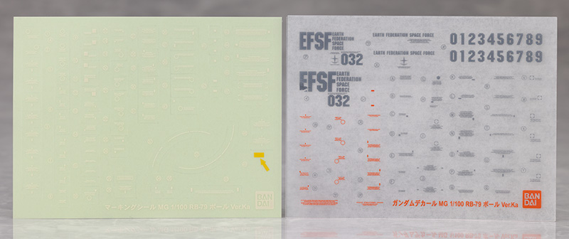 シールは一部のラインやコーションが印刷されたマーキングシールの他、転写式のガンダムデカールが付属します。
