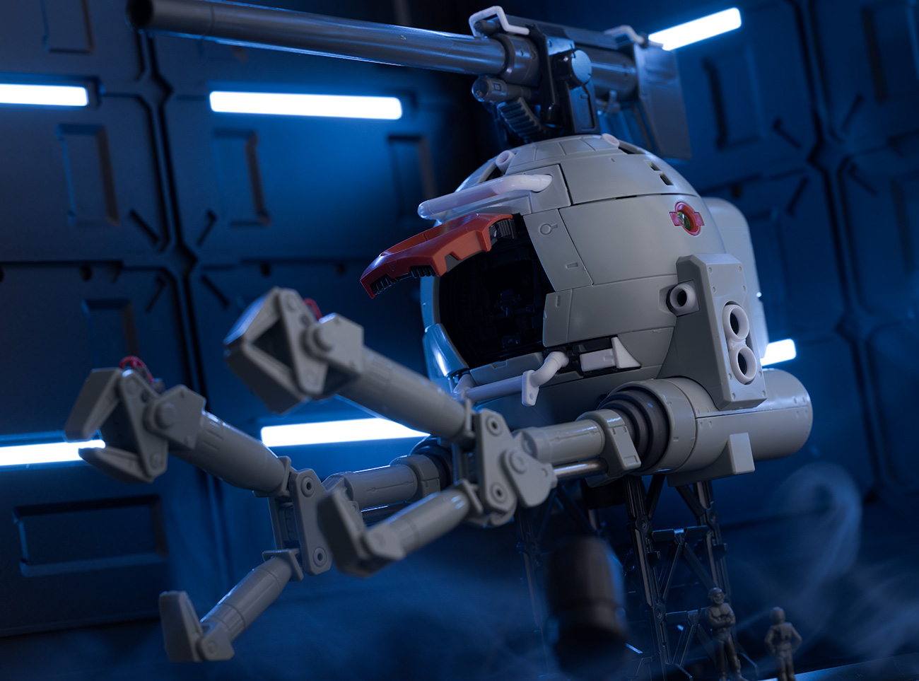 外装を被せてボールの完成。「機動戦士ガンダム」を始め様々な作品に登場している連邦の戦闘用ポッド「ボール」。