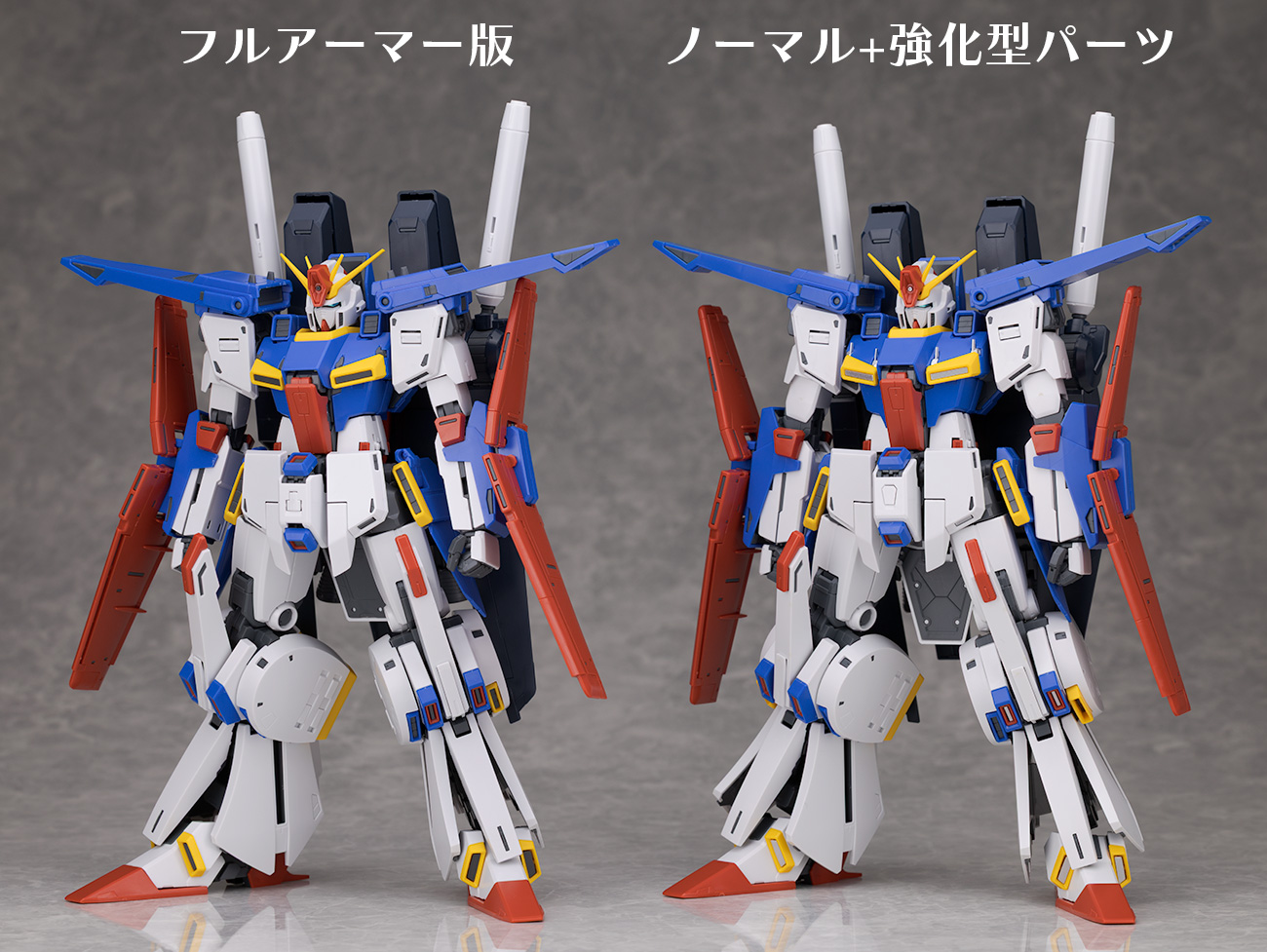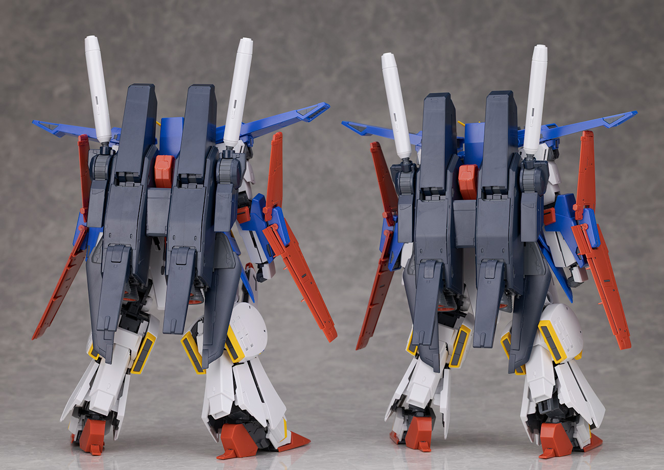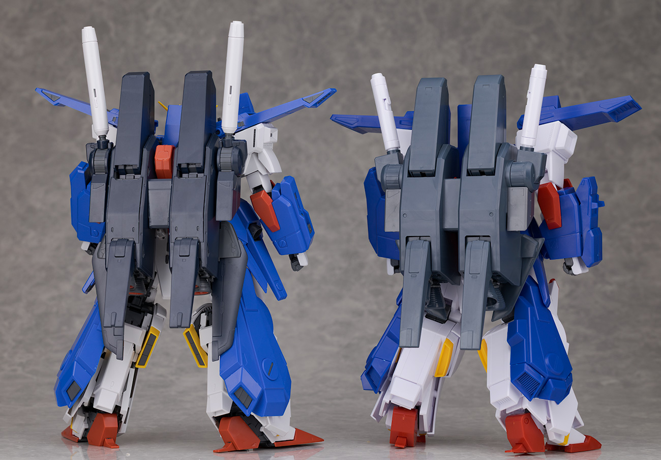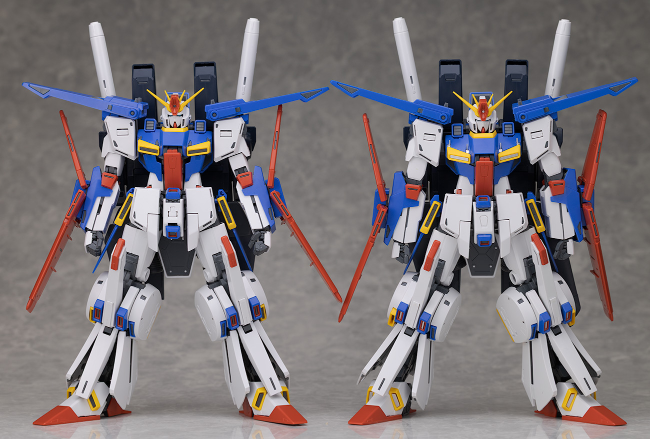 ノーマル版に拡張パーツを取り付けたMG 強化型ZZガンダムVer.Kaと比較。