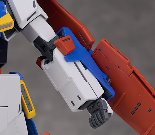 ポーズを付ける際、腕を動かすとどうしても肩の装甲がバックパックに干渉してしまいますが